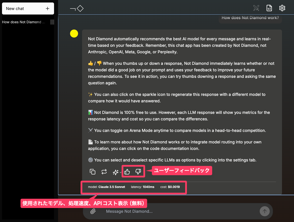 Not Diamondは、ユーザーの選好を学習して、その後のルーティングが改善されていくなど、一人ひとりに「自分だけの最強のChatGPT」を作ってくれる。