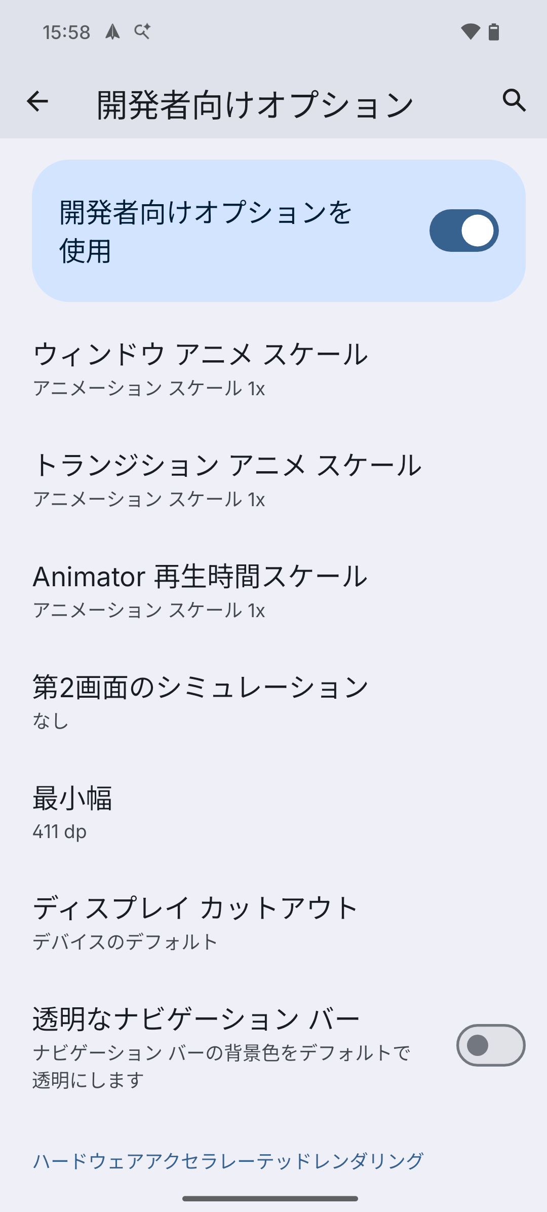 - 体感速度の向上: 開発者オプションのアニメーション短縮でサクサク動作