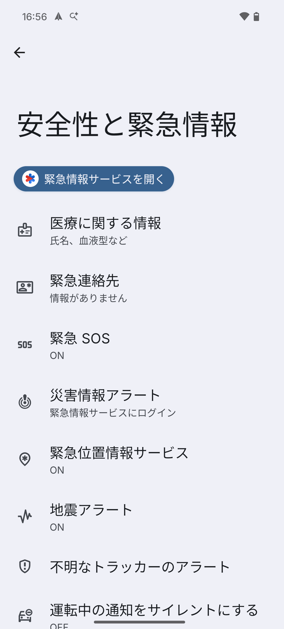 設定 > 安全性と緊急情報
