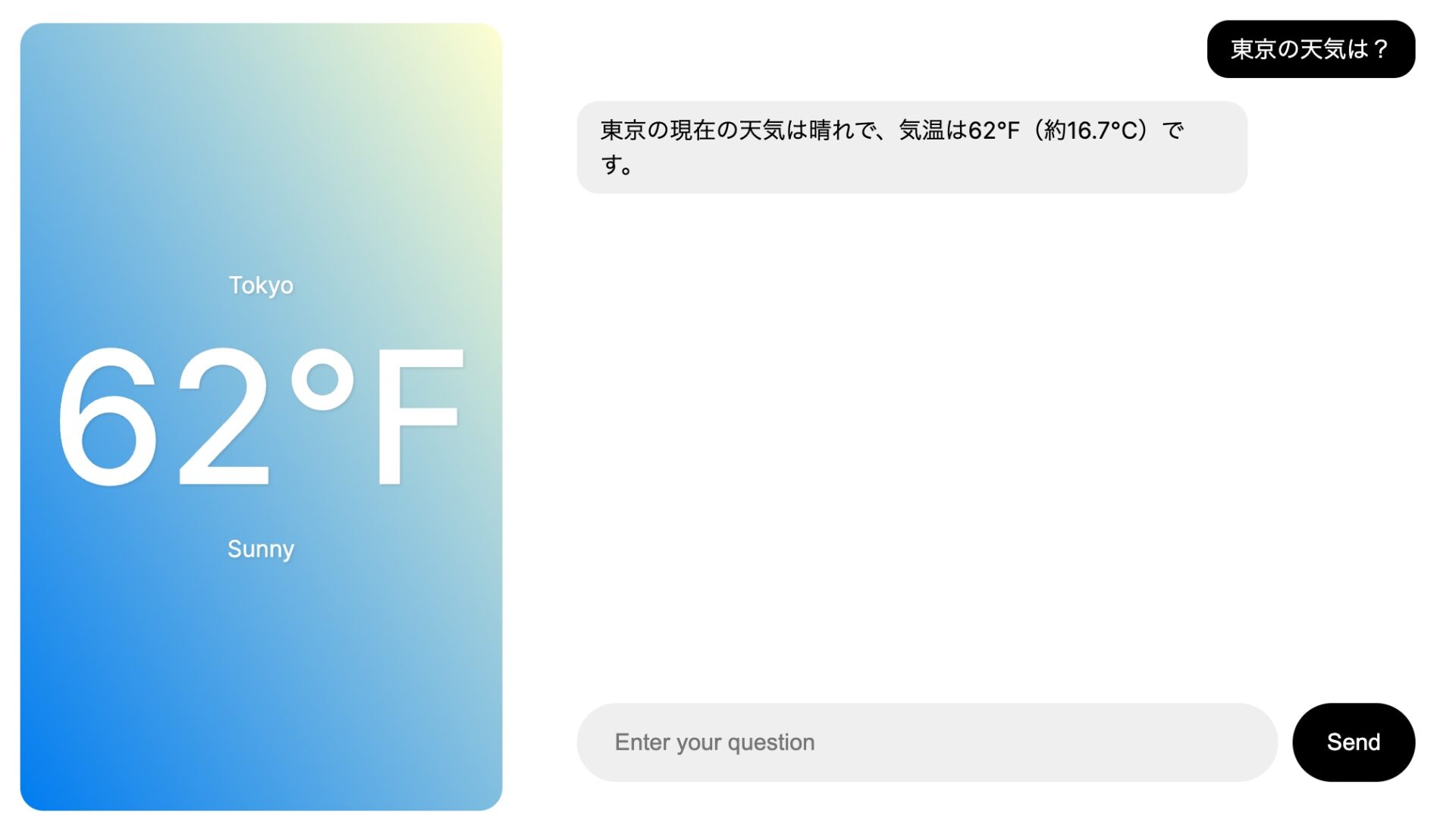 例えば、ユーザーが「東京の天気を教えて」と尋ねたとする。