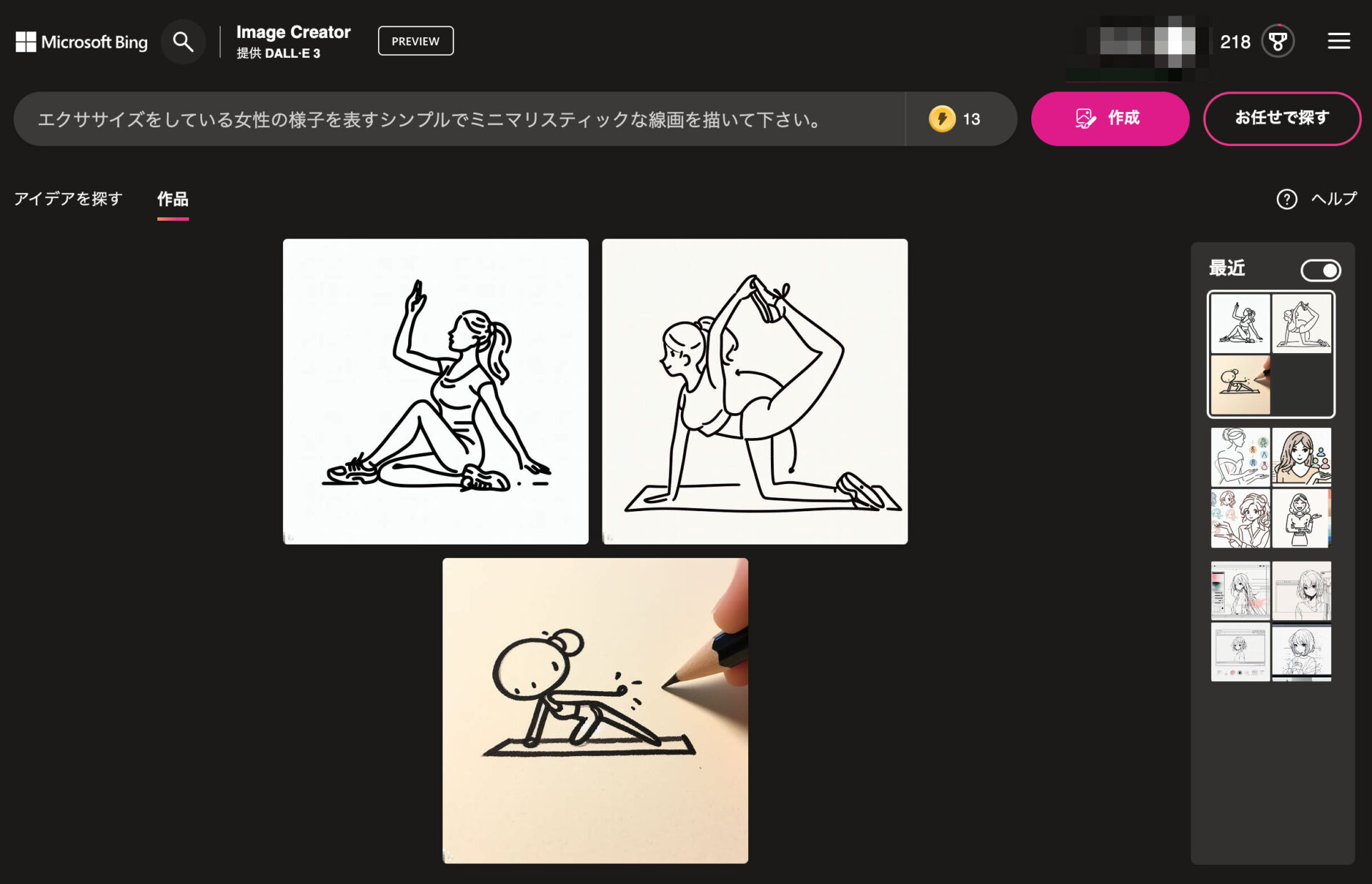 さらに、Bingチャットを使わずに、Bing Image Creatorの画面に直接やってきて、ここから新しい画像を生成することも可能だ。