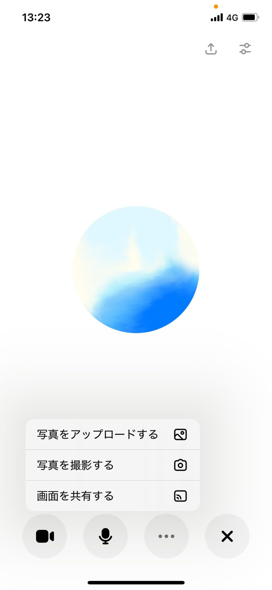 対話モードが無事に起動されると、画面の中央に水色の球体が表示される。