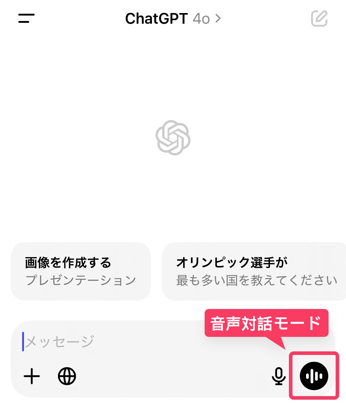 スマホ版のChatGPTアプリを開くと、右下に音の波形のようなマークが表示されているはずだ。これをタップすると、音声認識のモードが起動される。