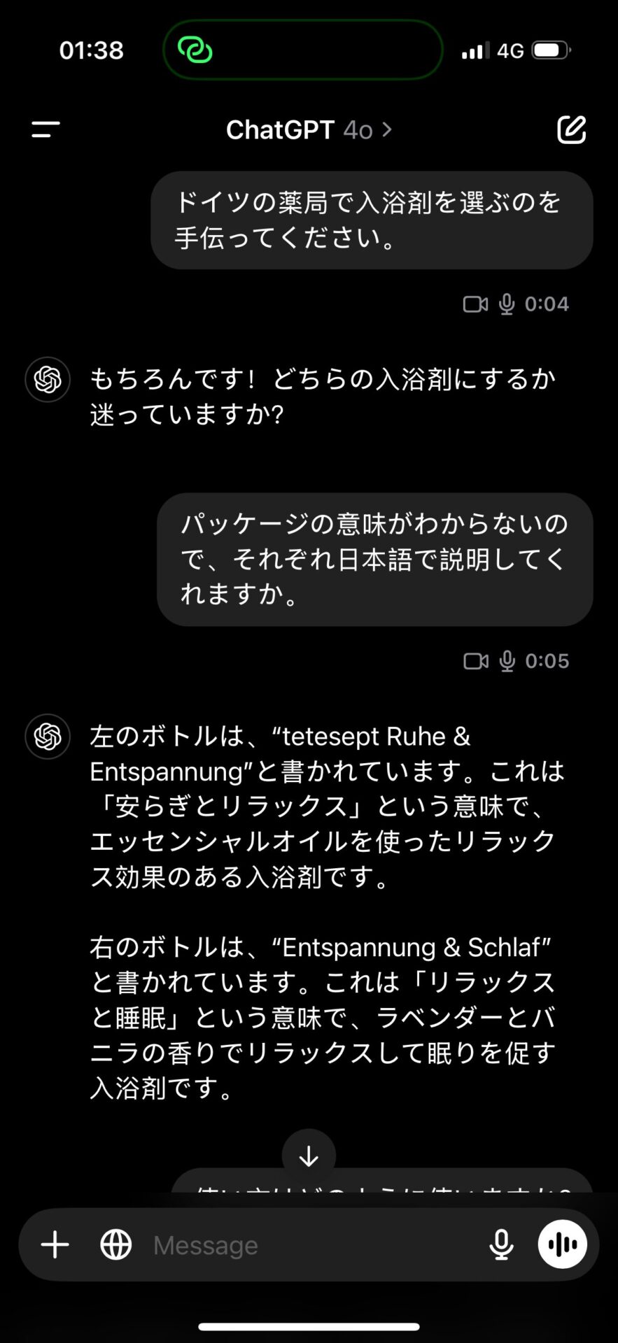 お土産ショップで商品パッケージの外国語が読めない時、駅やバス停で次の電車・バスが何時に来るかが読み取れない時、駅構内の看板の意味がわからない時、いつでもChatGPTアプリを取り出せば、即座に日本語に翻訳して解説してくれる。