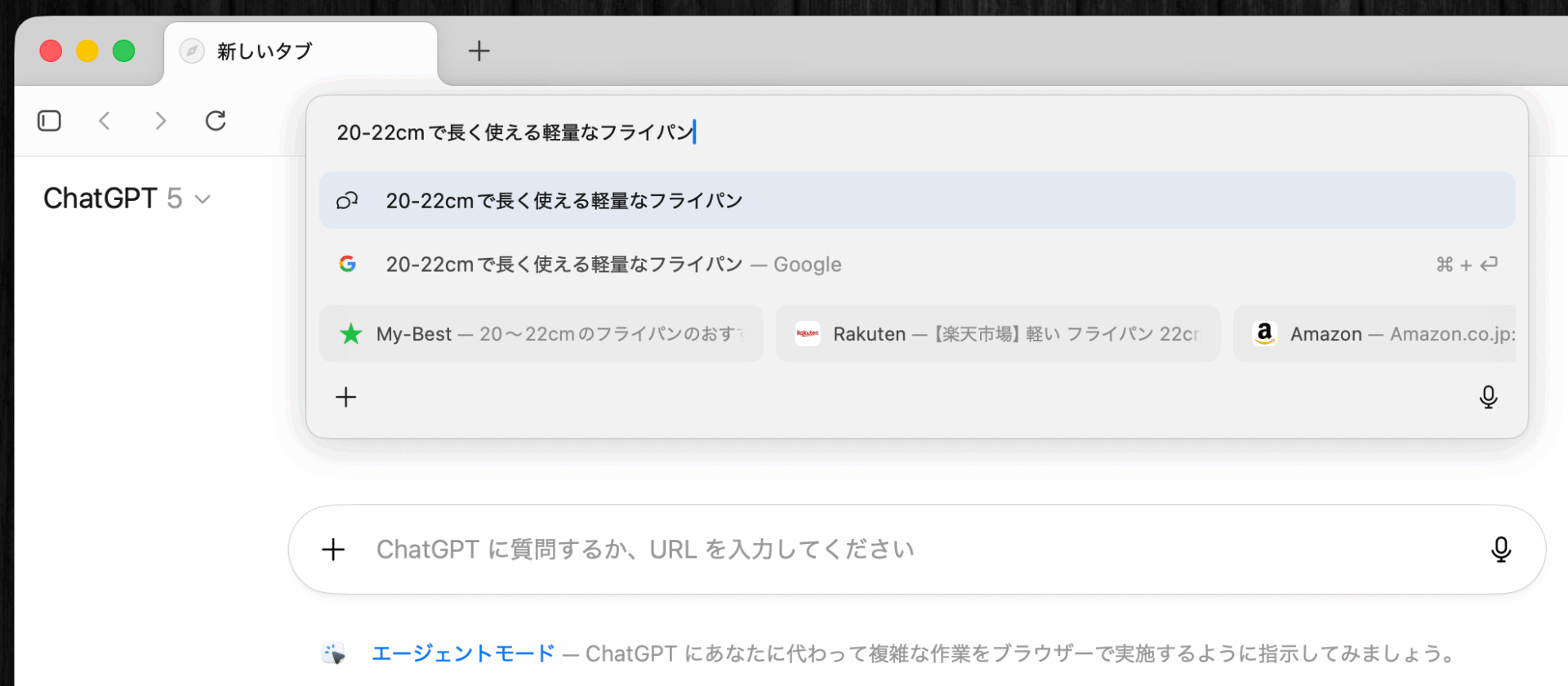 ChatGPT Atlas の目玉機能といえば、やはりこのエージェントモードであろう。