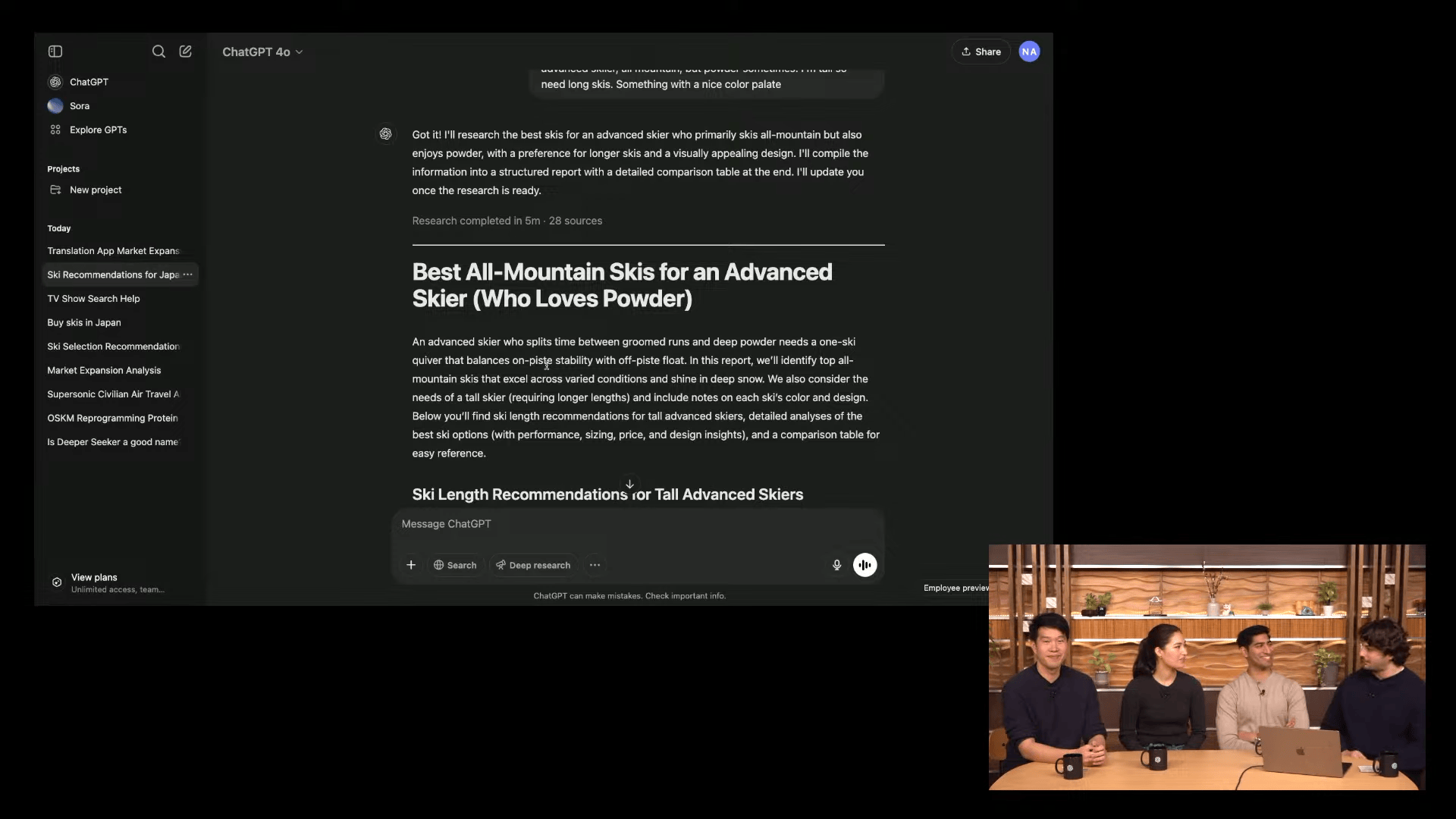本日行われたライブ配信「Introduction to Deep Research」では、マーケットリサーチで「Deep Research」を活用する例を示しながら、使用方法が示された。