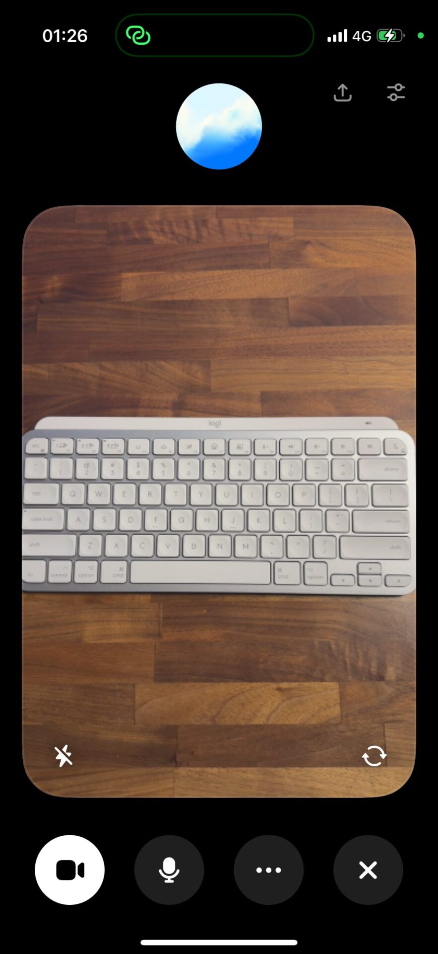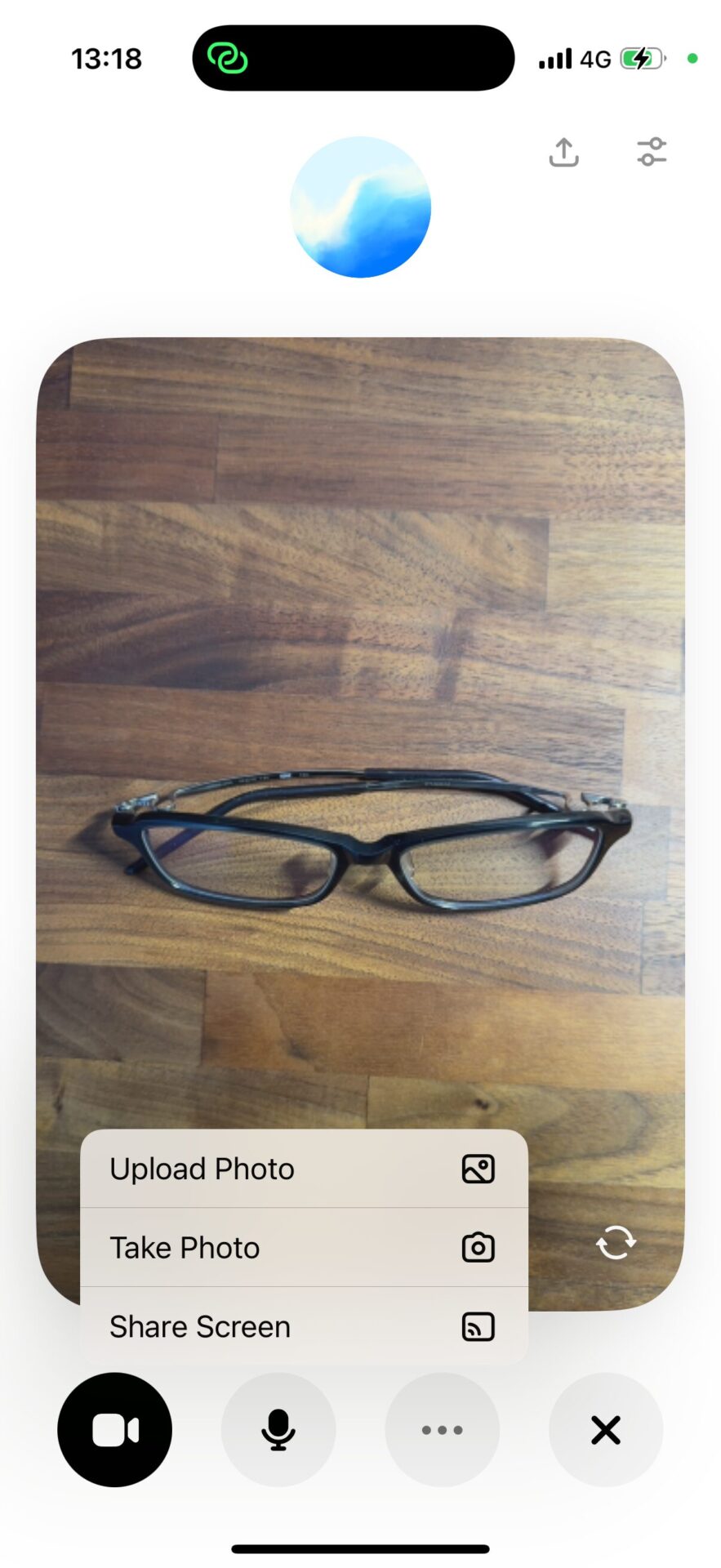 実際にiPhoneのChatGPTアプリで、Live cameraを有効にしてみると、以下のようにリアルタイムでカメラの映像を見ながら、ChatGPTと会話することができる。