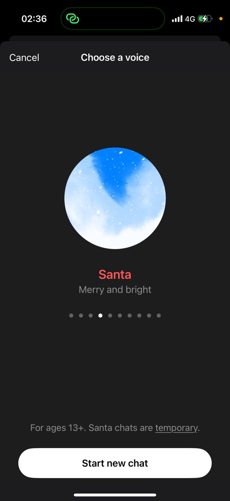 初回のサンタ会話時には、利用者の「Advanced Voice」使用制限が一度リセットされ、制限に達していてもサンタと話せるようになる。その後も標準音声モードなら制限後でもサンタとの対話は継続可能である。
