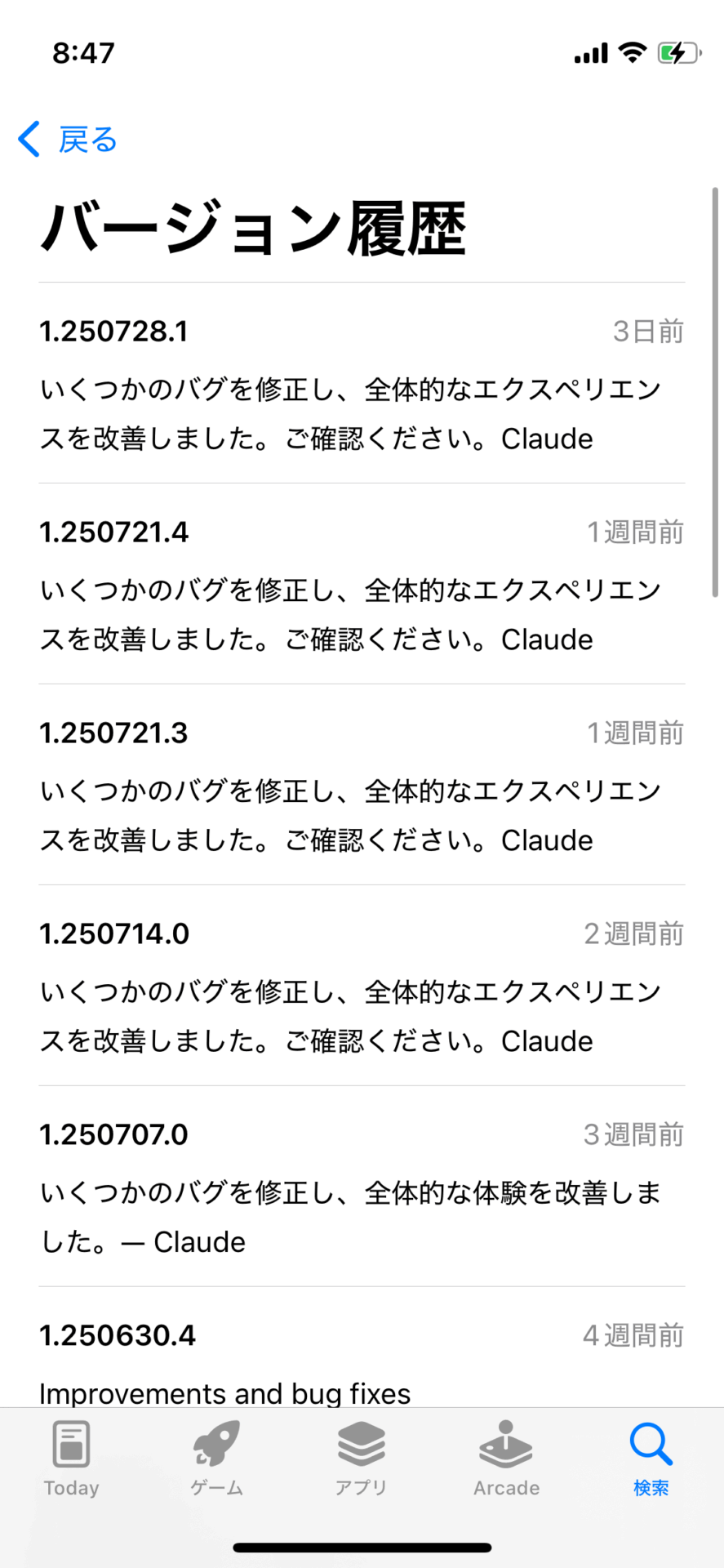 Claudeのアプリは定期的にアップデートされているが、具体的にどのような機能が実装されたのか、App Store のリリースノートを見てもほとんど分からない。