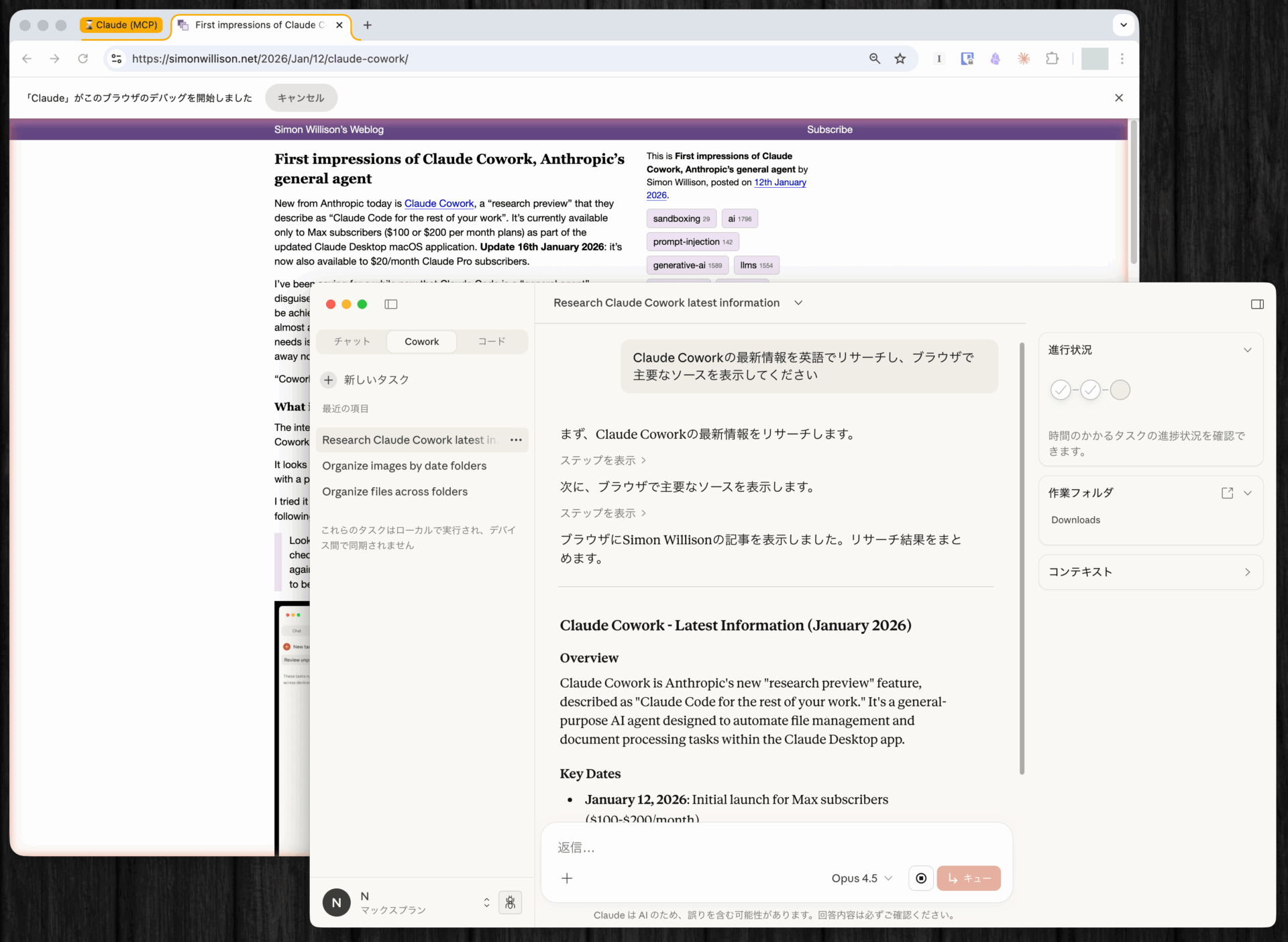 まずは専用フォルダを作成し、ダウンロードフォルダの整理のようなシンプルなタスクから始めてみてほしい。Claudeがファイルを移動し、リネームし、分類していく様子を眺めれば、これが単なるチャットの進化版ではないことが、すぐにわかるはずだ。
