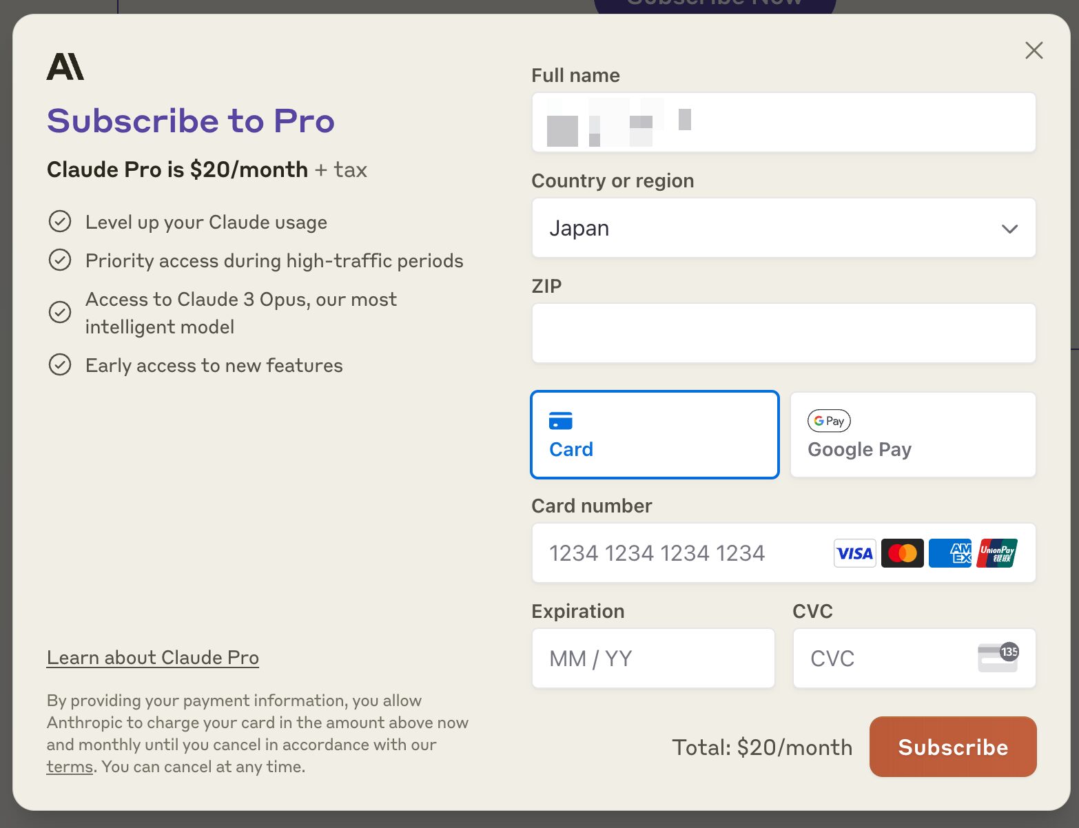この点、APIキーを使うと、月額契約なしで、使った分だけの従量課金でClaude 3 Opusを利用できる。