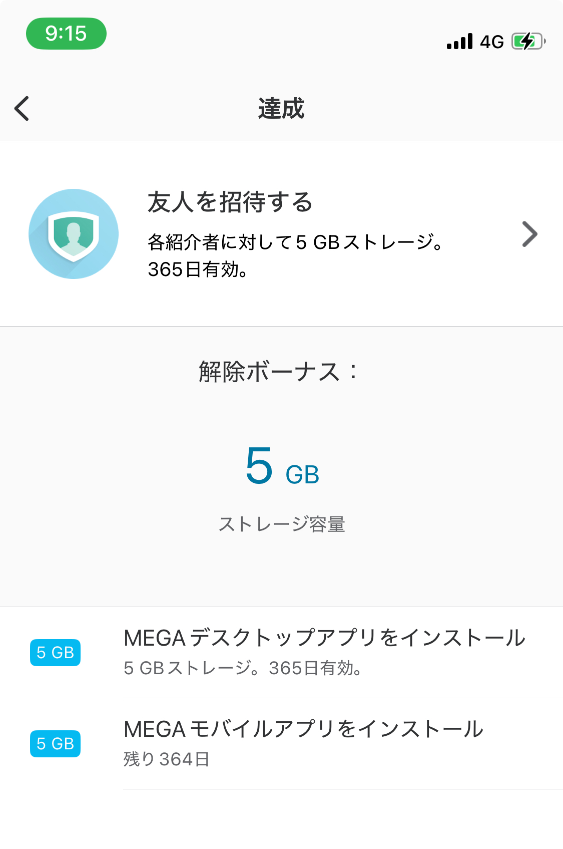 但し、アプリをダウンロードする、友人を招待するなど条件を達成していくと、1年間限定で5GBの容量が足されていく。