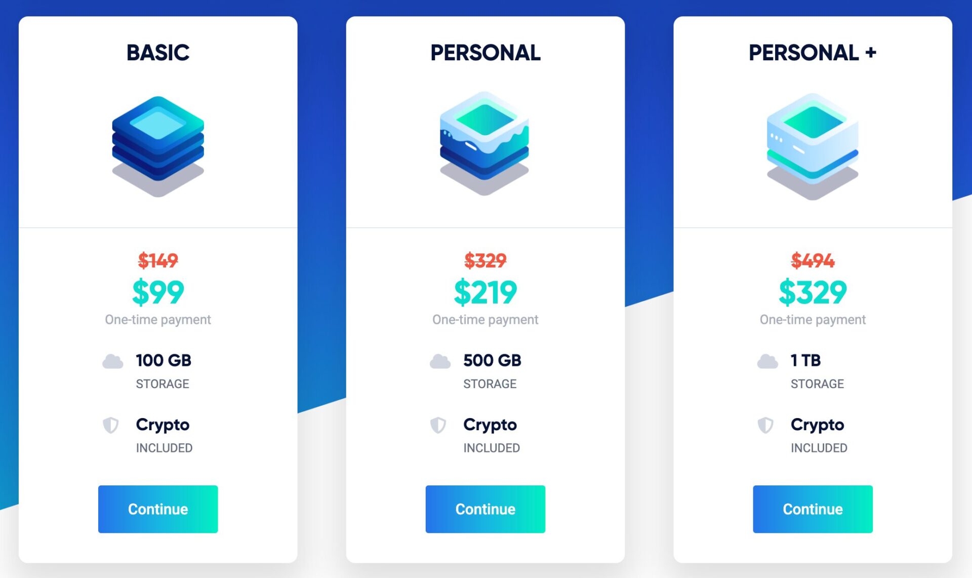 Icedriveのライフタイムプランは100GB (219)、1TB ($329)の3つの容量オプションがある。pCloudよりも小さい容量のプランが存在するため、初期費用を抑えることができる。2TBは要らないけどライフタイムストレージは欲しい、という人の受け皿として最適だ。