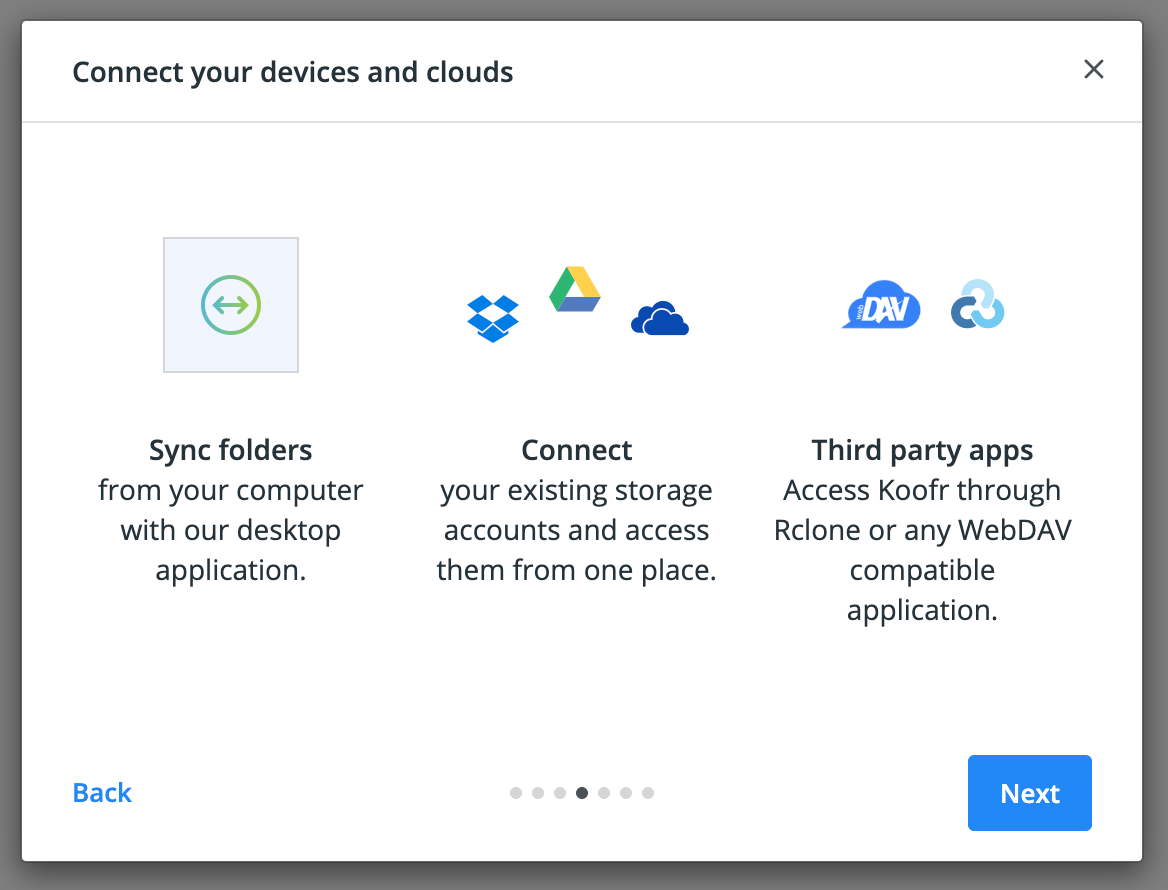 | 5. Koofr | 無料〜 | 10GB | ・他クラウドを接続して一元管理 |