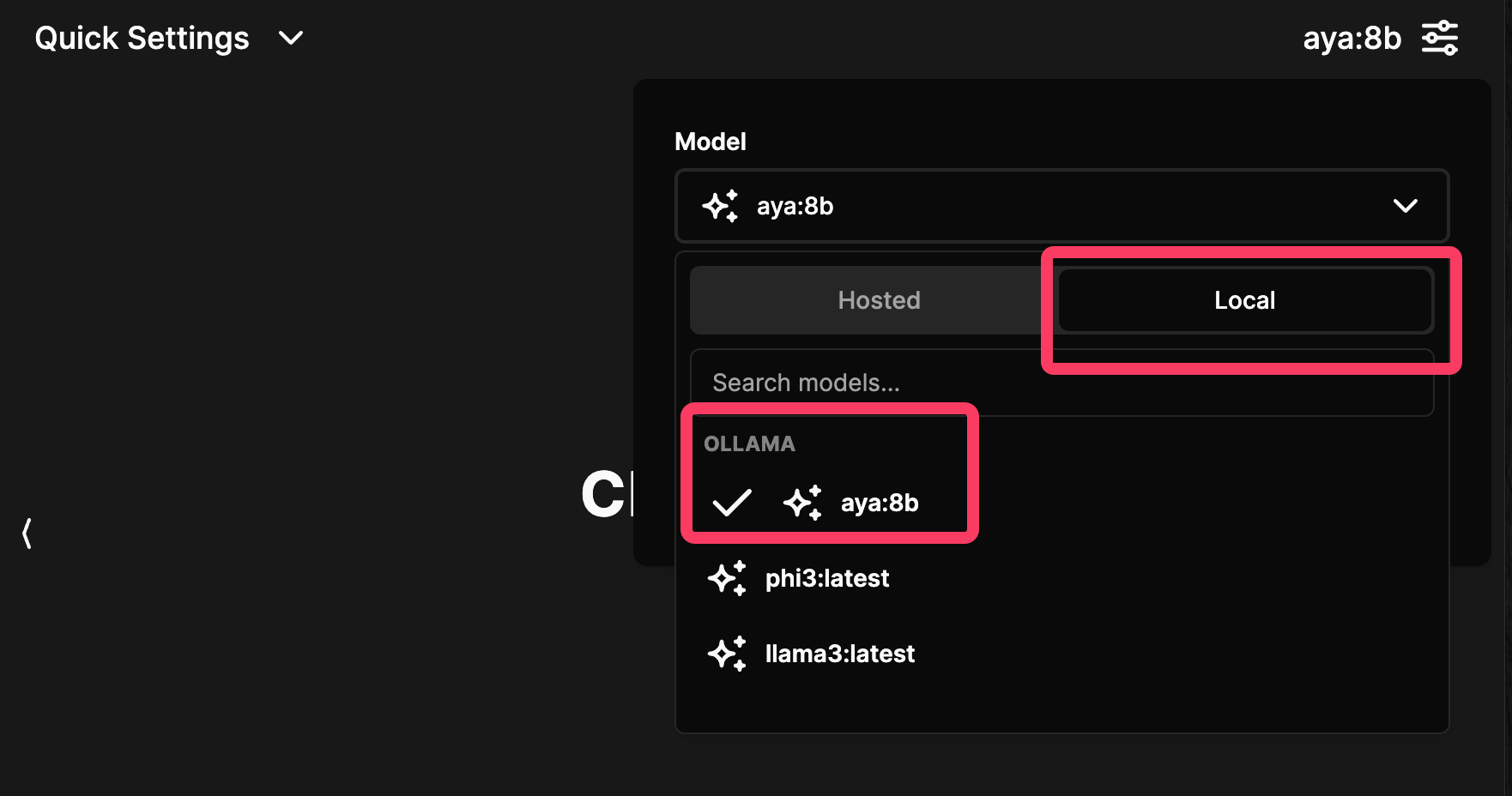 以上の手順で、ターミナル上でのollama コマンドを通してAya 23とチャットすることができたが、使い慣れたチャット風のインターフェースでローカルLLMを使用したいこともあるだろう。
