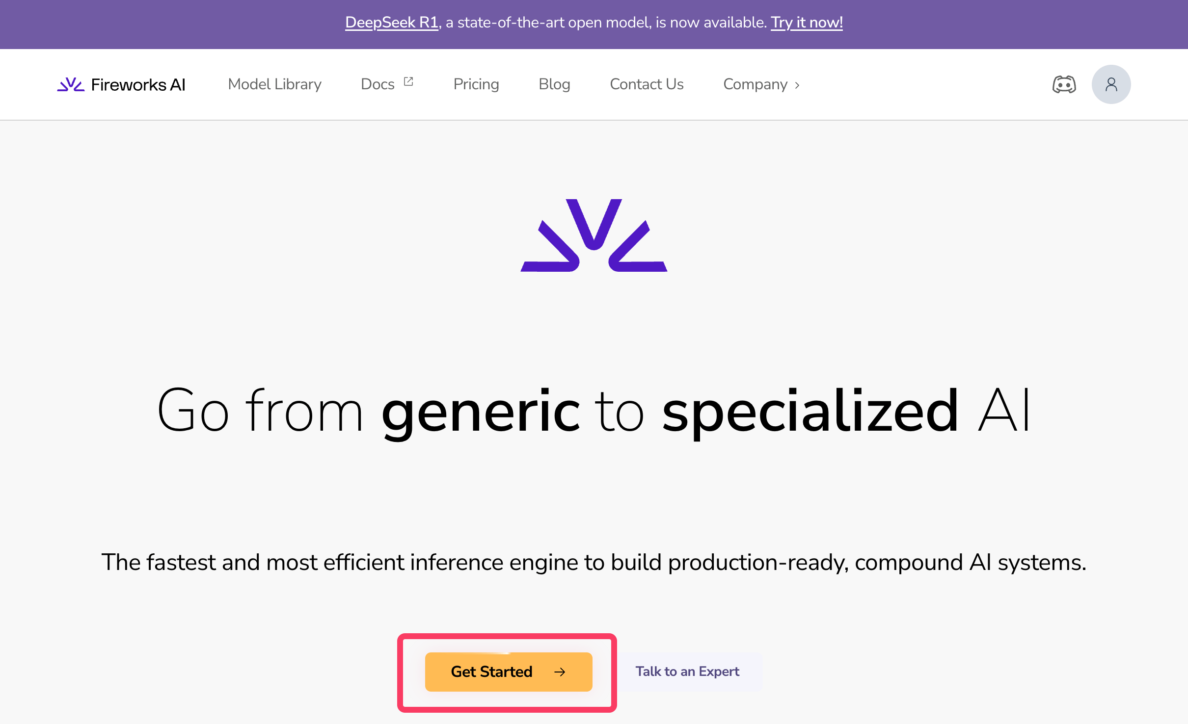 まずは、Fireworks AIのトップページにアクセスし、「Get Started」をクリックしてアカウントを作成する。