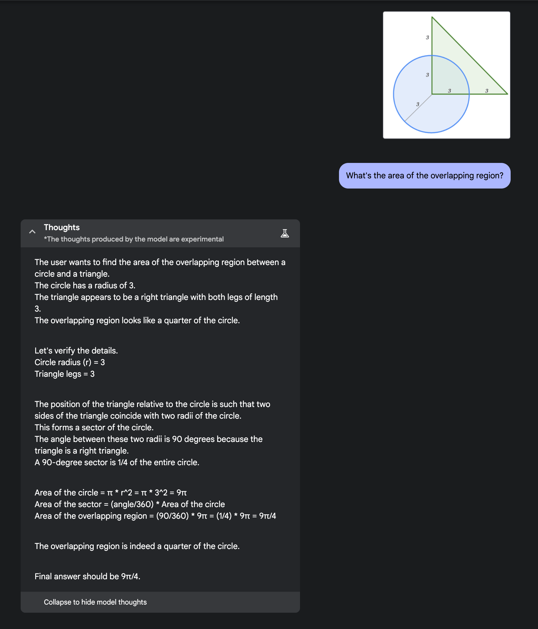 Gemini 2.0 Flash Thinkingは、少なくとも数学の図形問題においては、明らかにGPT-4oの推論能力を上回っている。