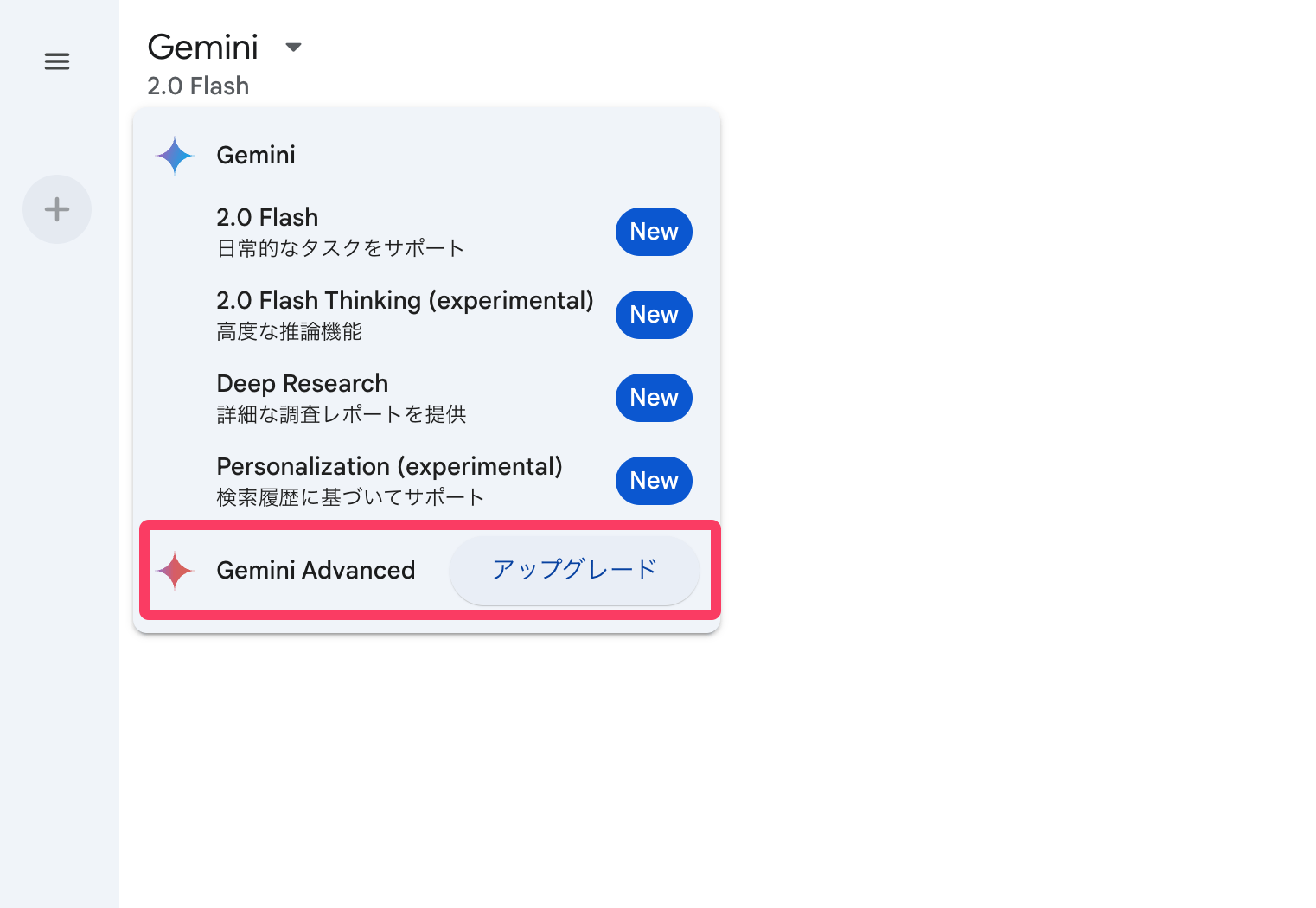 「Gemini 2.5 Pro Experimental」などの最新モデルは、無料版のGeminiアプリでは利用できないので、有料の「Gemini Advanced」に登録する必要がある。