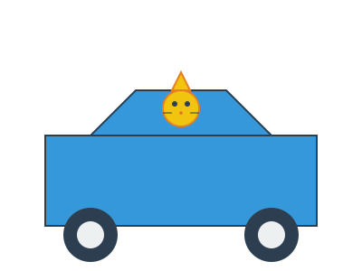 車を運転する猫のSVG画像を書き出してください。SVGとは、図形の形や色を文字で指定するテキストファイルで、ブラウザで見るとイラストとして表示される、という特殊な形式の画像だ。