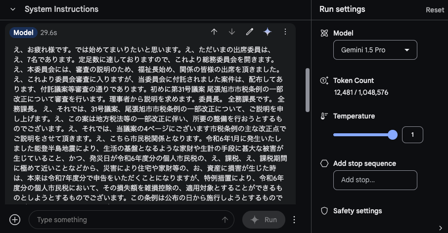この記事では、Gemini 1.5 Pro / Flashの性能をテストするため、適当に見つけた自治体の委員会の録音データを文字起こしして内容を確認してみることにする。