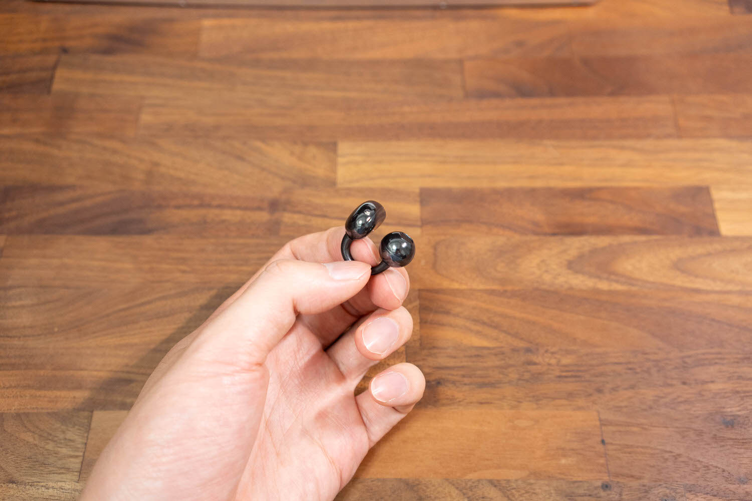 他社のオープンイヤー型イヤホンでは、SONY Linkbudsのように耳の中に入れて固定するか、Shokz OpenFitのように耳の外側に引っ掛けて固定するデザインが多い。