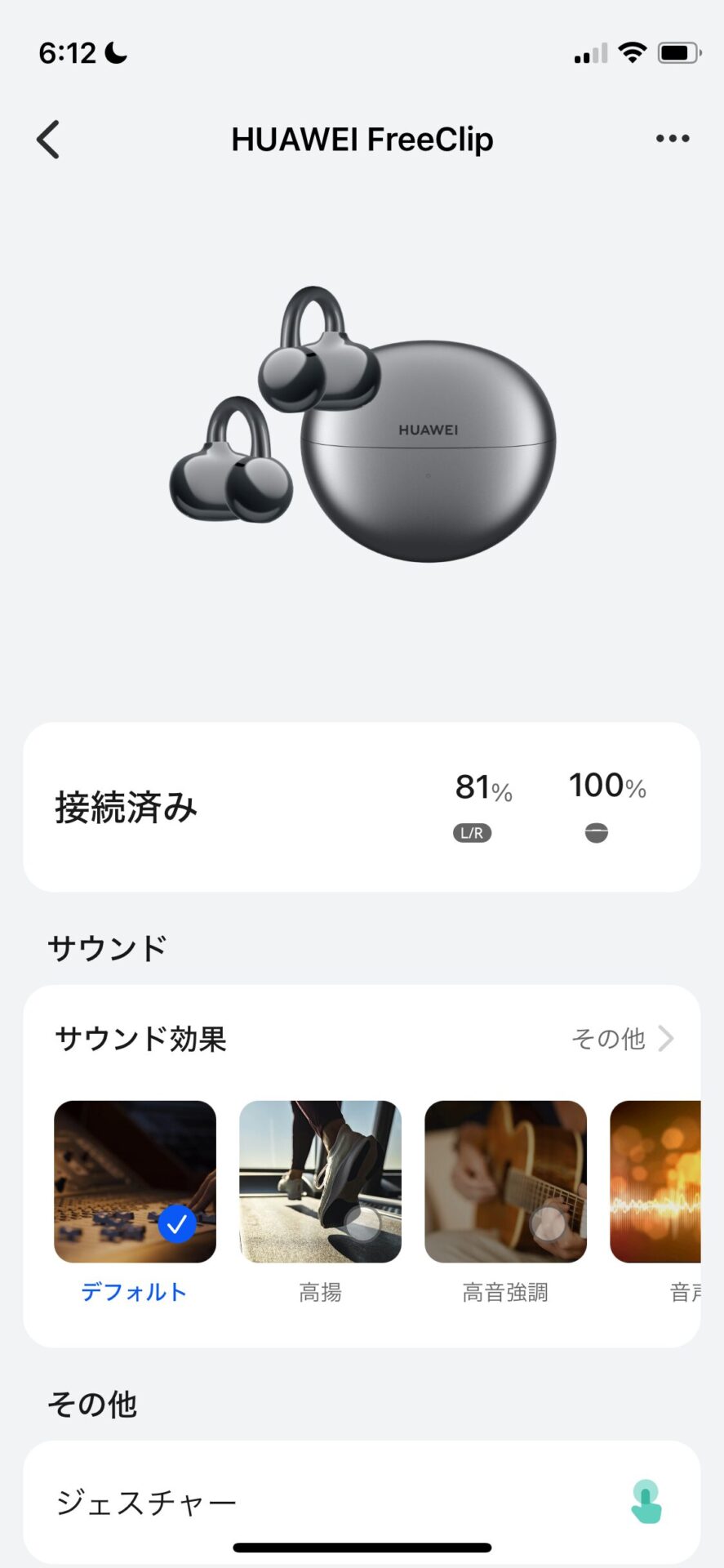さらに、Huaweiのアプリを入れると、「サウンド効果」機能で低音を強調するなどのイコライザー的機能も利用できる。