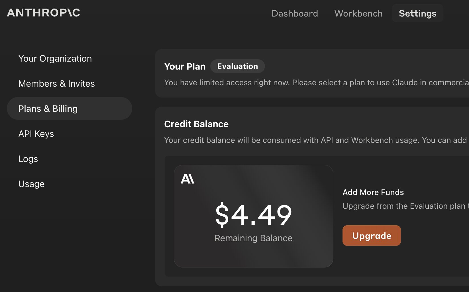 Workbench上でOpusモデルなどを使ってみた場合も、5ドル分のAPIのクレジットは消化されていく。