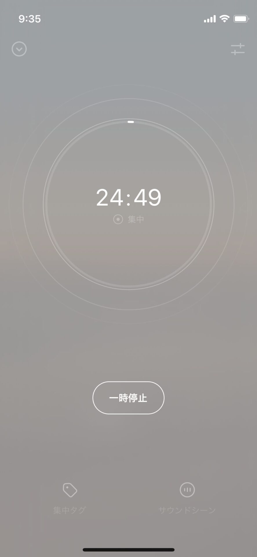 歌付きの音楽などを聴くと集中が削がれるので、Tideの自然環境サウンドを聴くことで、周囲の雑音を打ち消しながらも、集中の邪魔にならない静かな自然音の中に身を置くことができる。