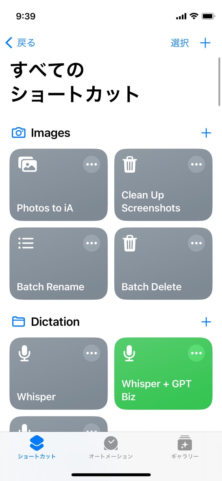 ショートカットアプリでは、ギャラリーから既存のショートカットを追加したり、自分でゼロからショートカットを作成したりすることができる。