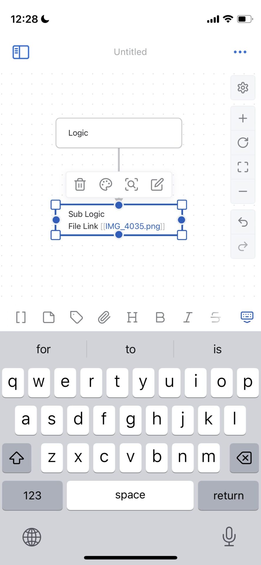 更に、Markdown以外にも、Canvasと呼ばれるオープンソースのマインドマップのファイル形式にも対応しており、ノードと矢印を作って、マインドマップ・ロジックツリーなどをiPhone上で作成することができる。