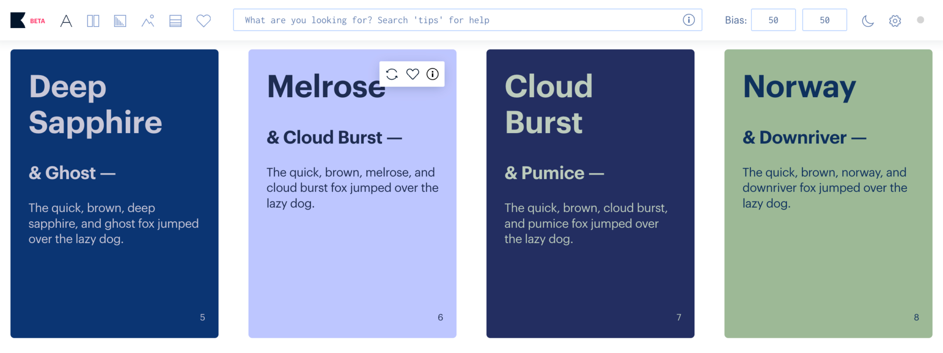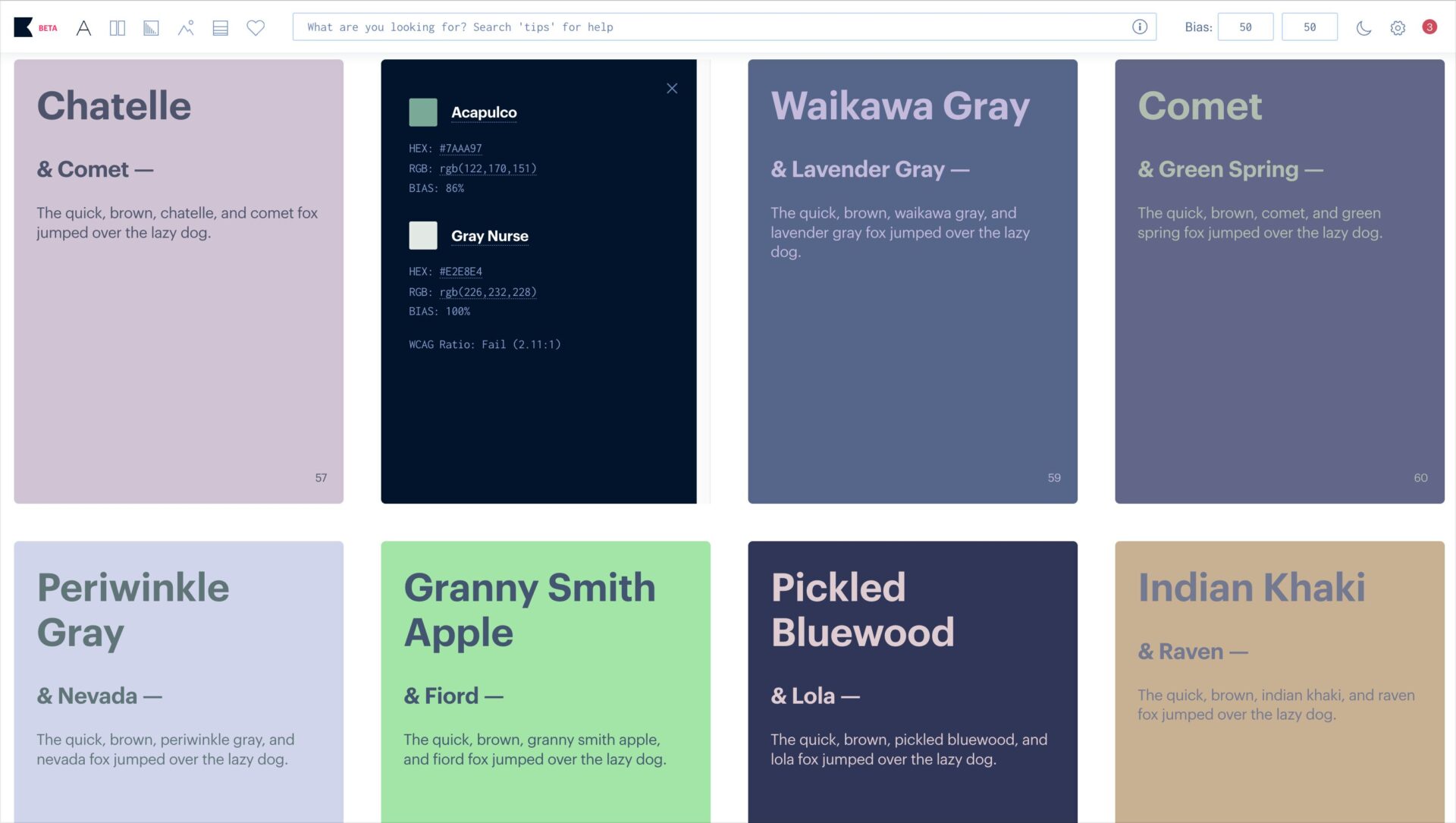 背景色に対して、テキストを載せた2色の組み合わせを、無限に表示してくれる。