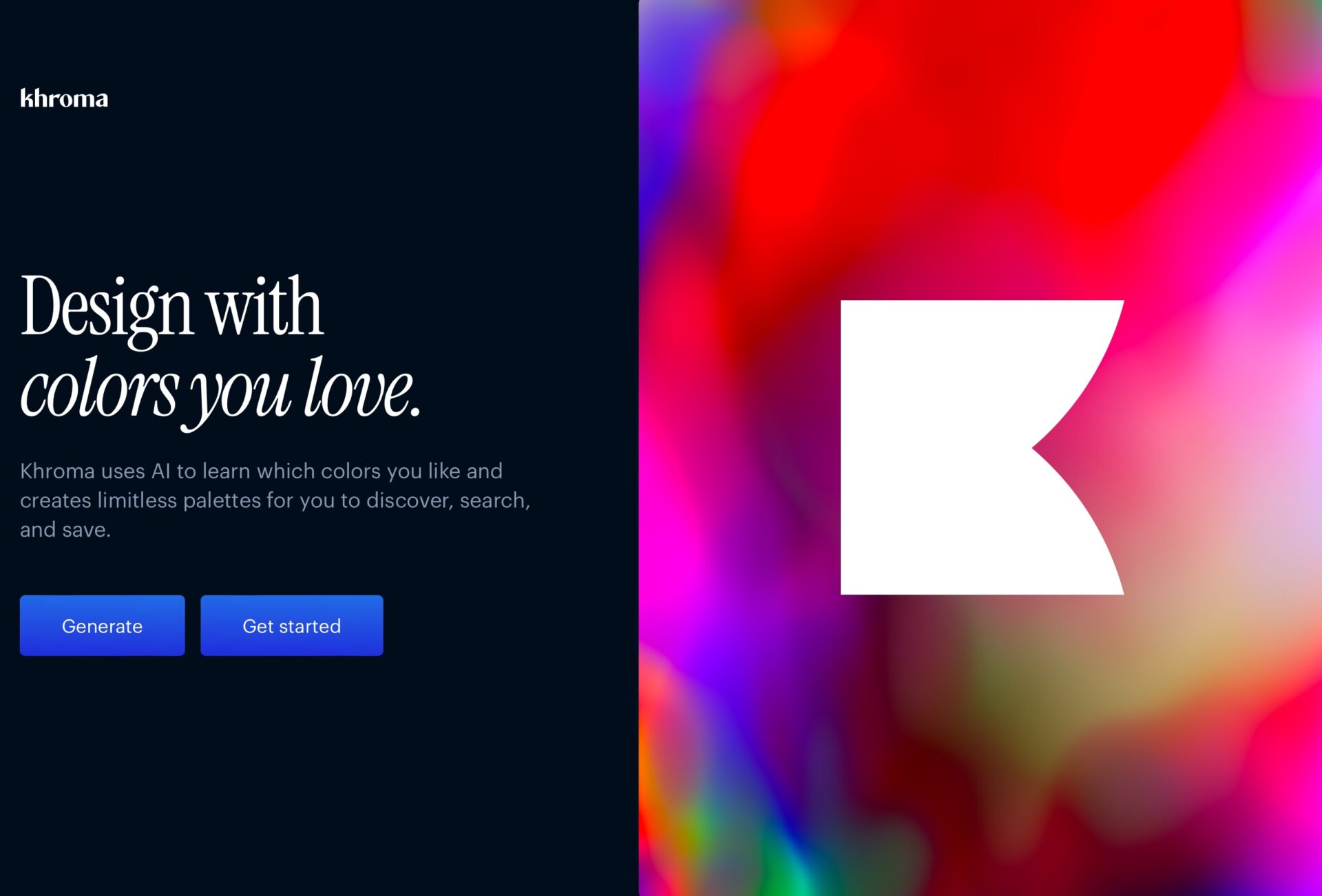 まずはステップ1のカラー選択だが、Khromaの公式ページを開くと、基本的な機能の解説が載っており、「Generate」というボタンが表示されている。