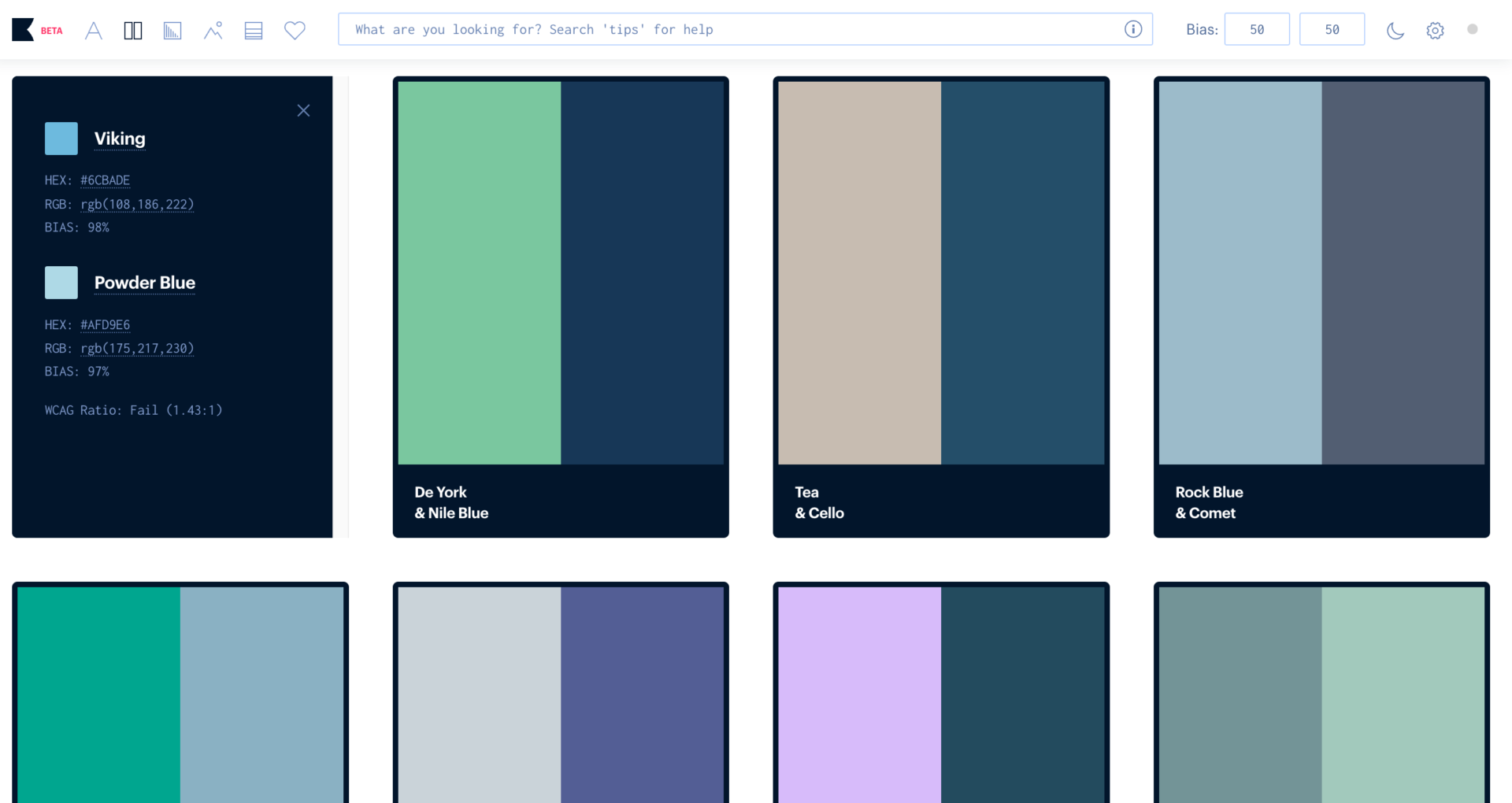 自分好みのカラーパレットでありながら、色覚多様性に配慮したコントラスト比を満たす背景色とテキスト色の組み合わせだけを確認できるので、Webデザインなどを行う上で非常に便利な機能だ。