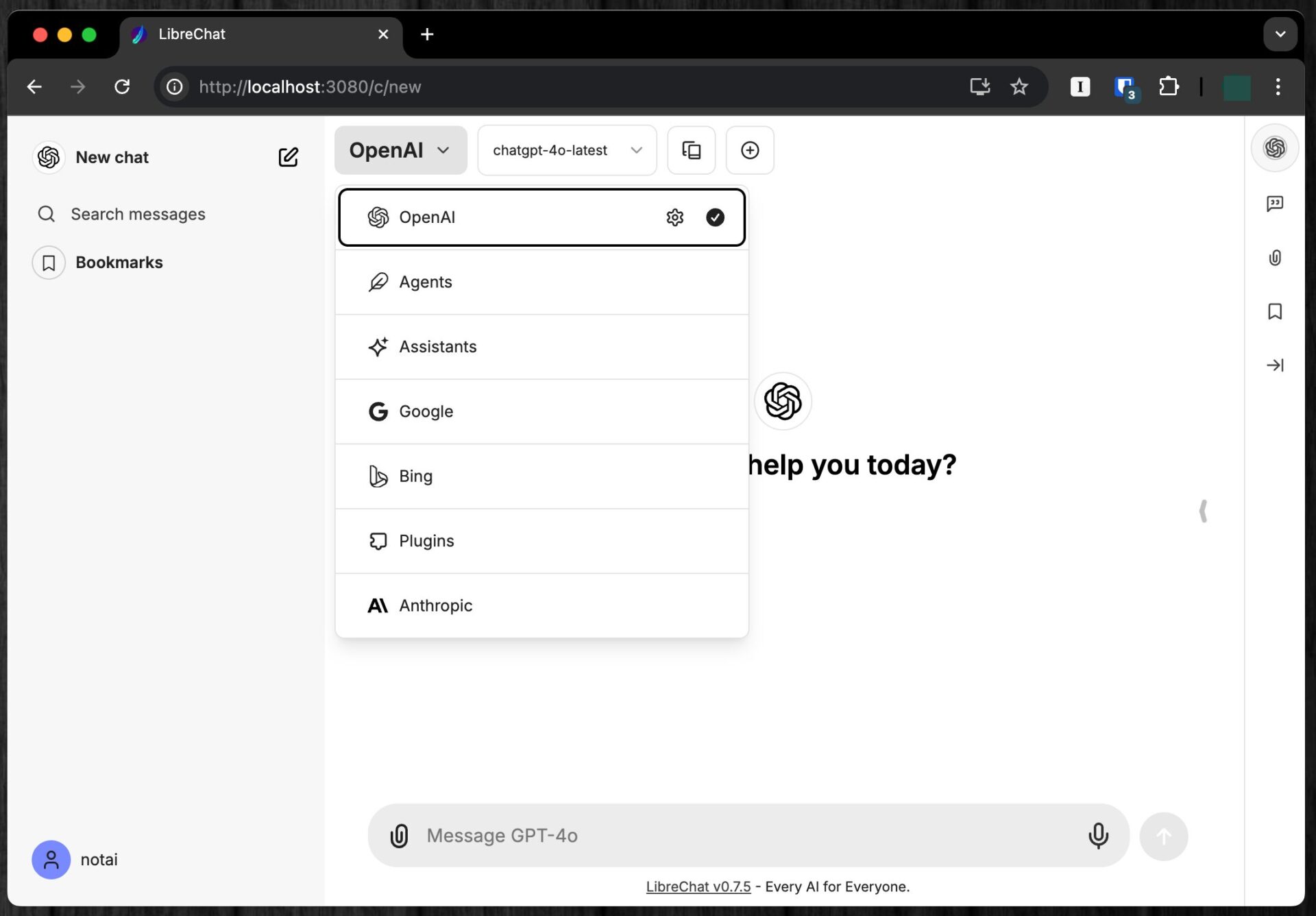 git pulldocker compose pulldocker compose up以上で、最新のアップデートが反映され、再びhttp://localhost:3080/にアクセスすることで、LibreChatが利用できる。