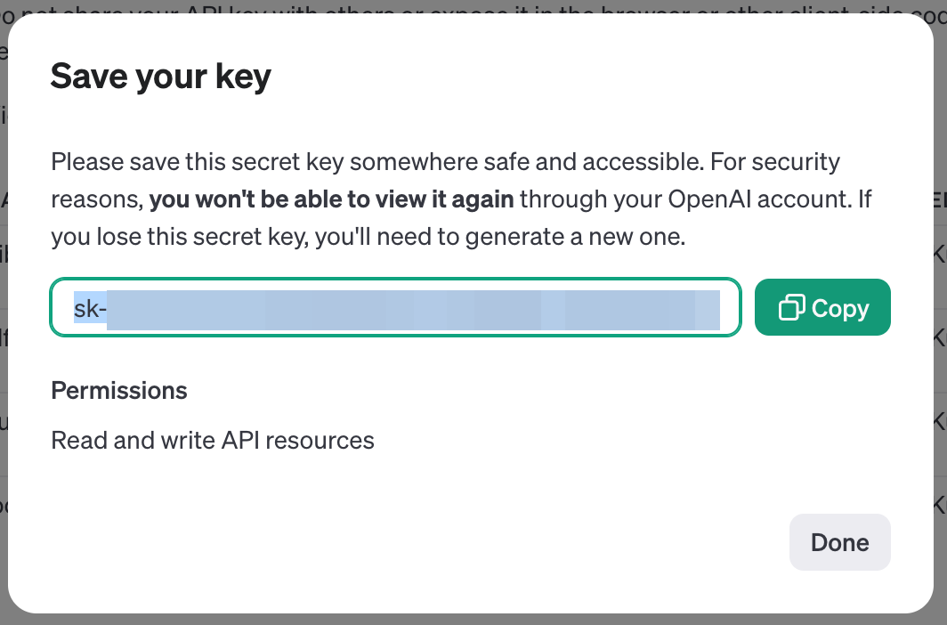 作成したAPIキーは、一度しか表示されないので、必ずコピーしておくこと。