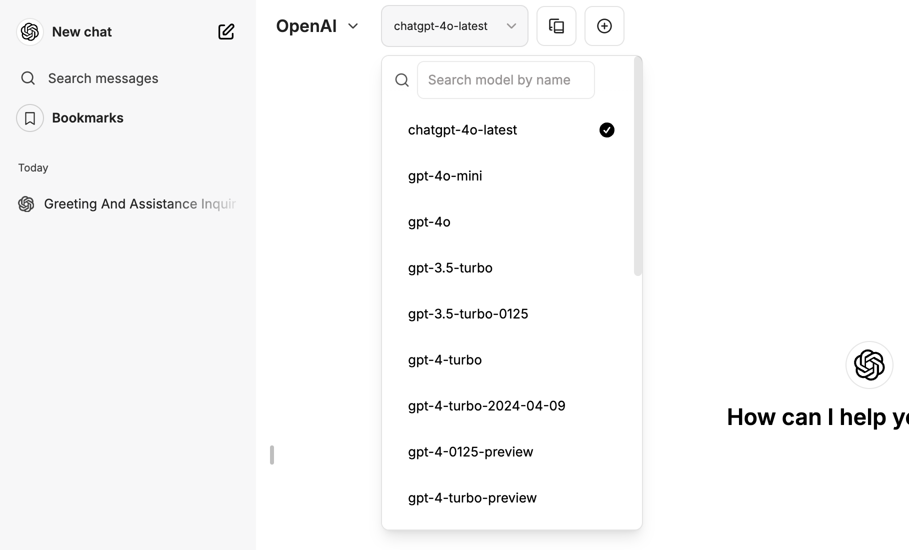 モデルをプルダウンメニューで選択することができ、最新のGPT-4oモデルやGPT-4o-miniモデルを含め、歴代のモデルを呼び出すことができる。