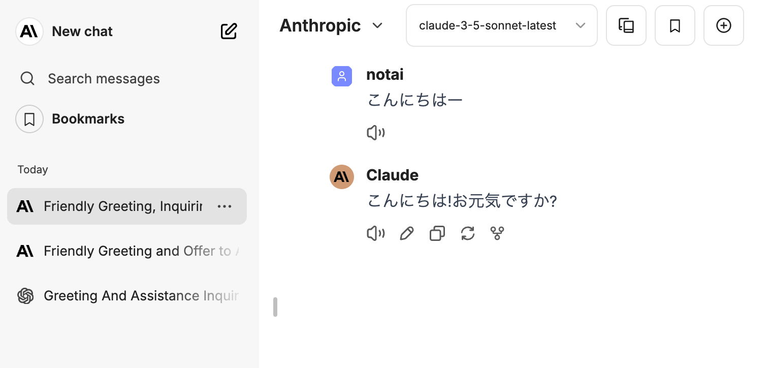 これで、OpenAIとAnthropicのすべてのAIモデルを、LibreChatの一つの画面から呼び出せるようになった。