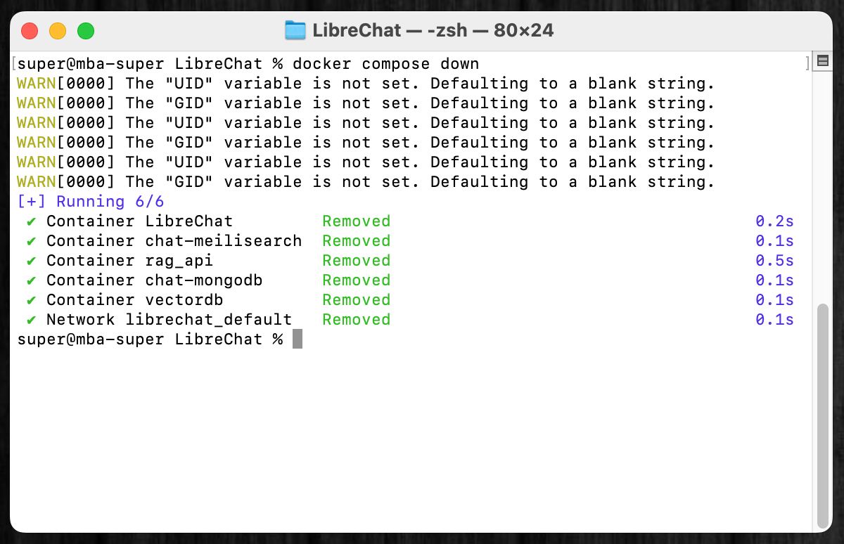 cd LibreChatdocker compose down