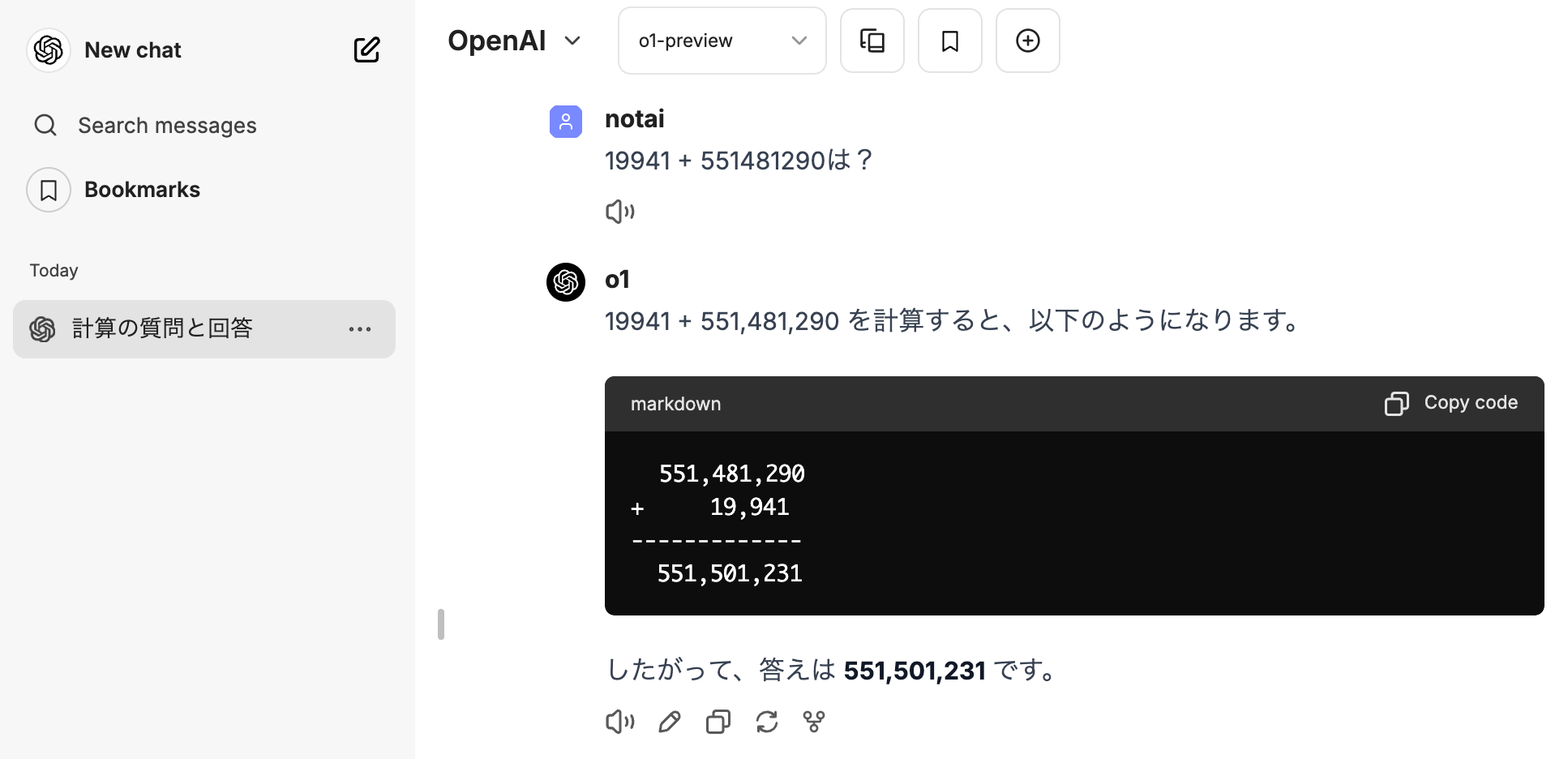 これによって、LibreChatのモデル選択メニューに、追加した「o1-preview」が現れていることが確認できた。