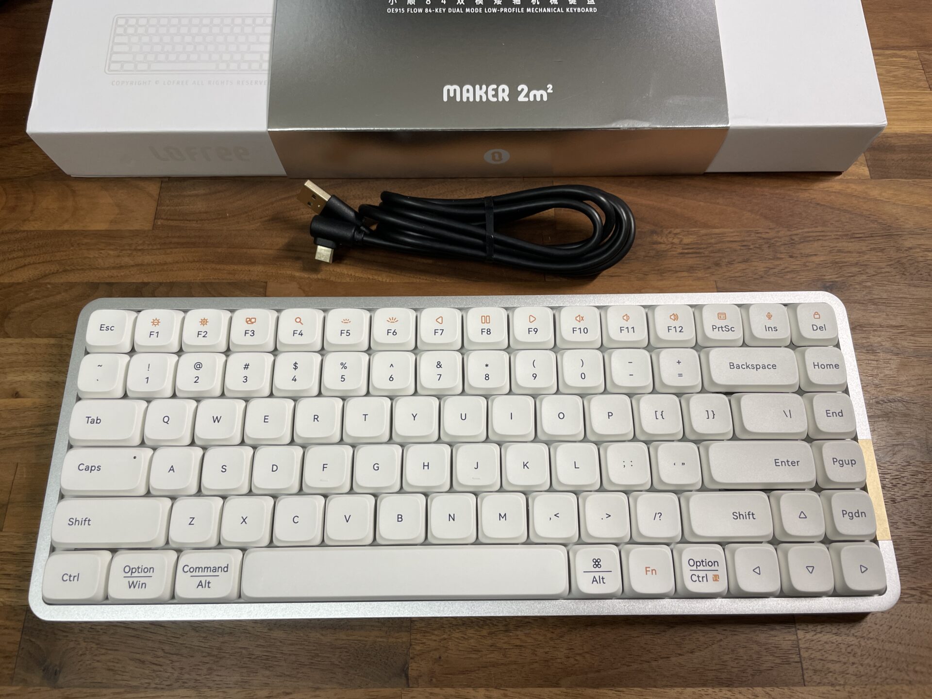 Lofree FLOWの本体はUSB-Cポートなので、USB-AからUSB-Cに接続するケーブルが付属している。