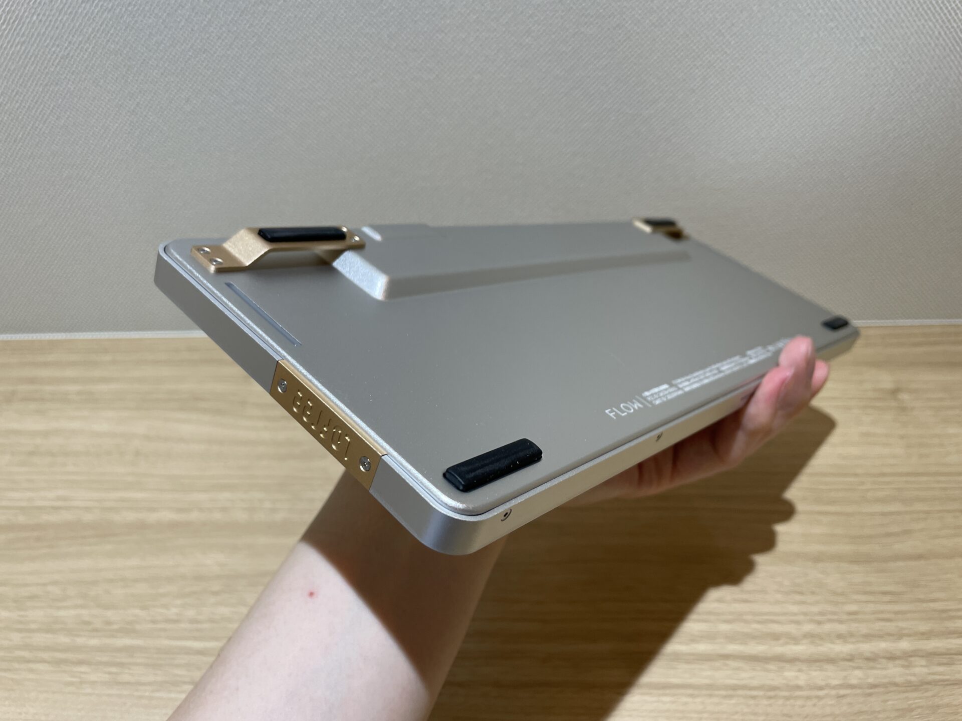 ちなみに、Lofree FLOWは、568gというペットボトル1本分くらいの重さなので、職場やカフェに持ち歩くことも不可能ではない。
