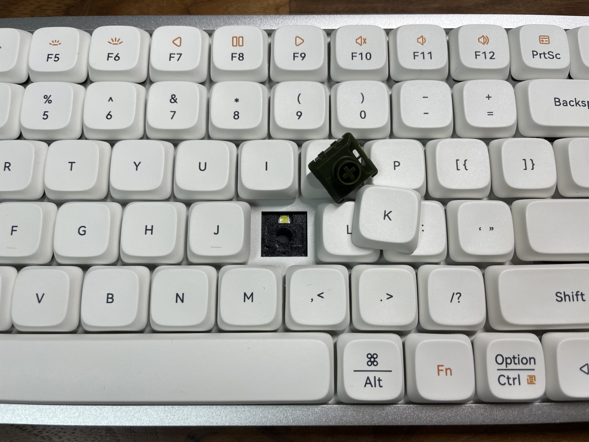 Lofree FLOWは、「ホットスワップ」対応なので、購入後に自分でキースイッチを外して、別のスイッチに挿し替えることも可能だ。