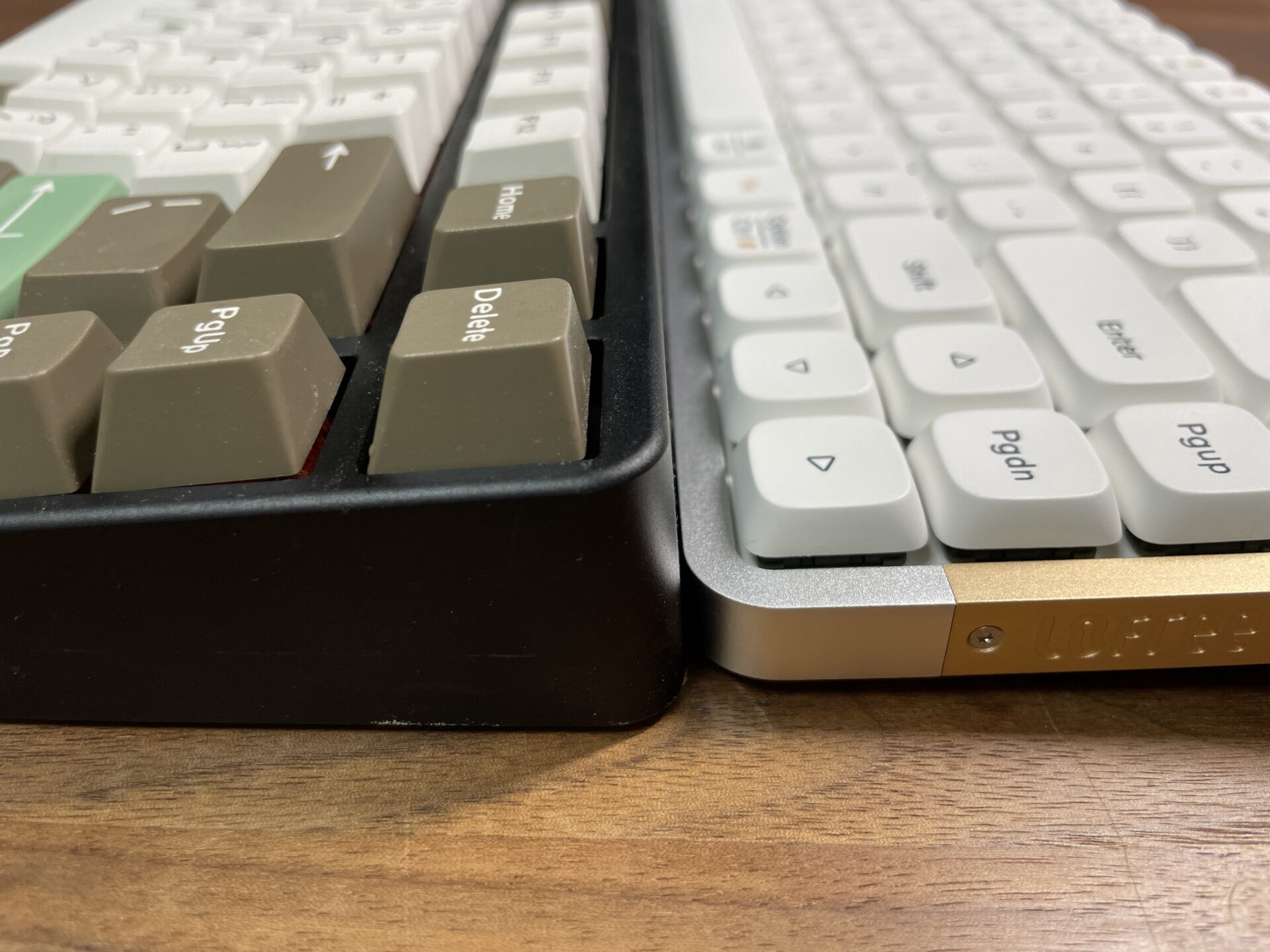 筆者が持っているハイプロファイルのメカニカルキーボード(左)と、Lofree FLOW(右)を横に並べてみた様子が以下である。