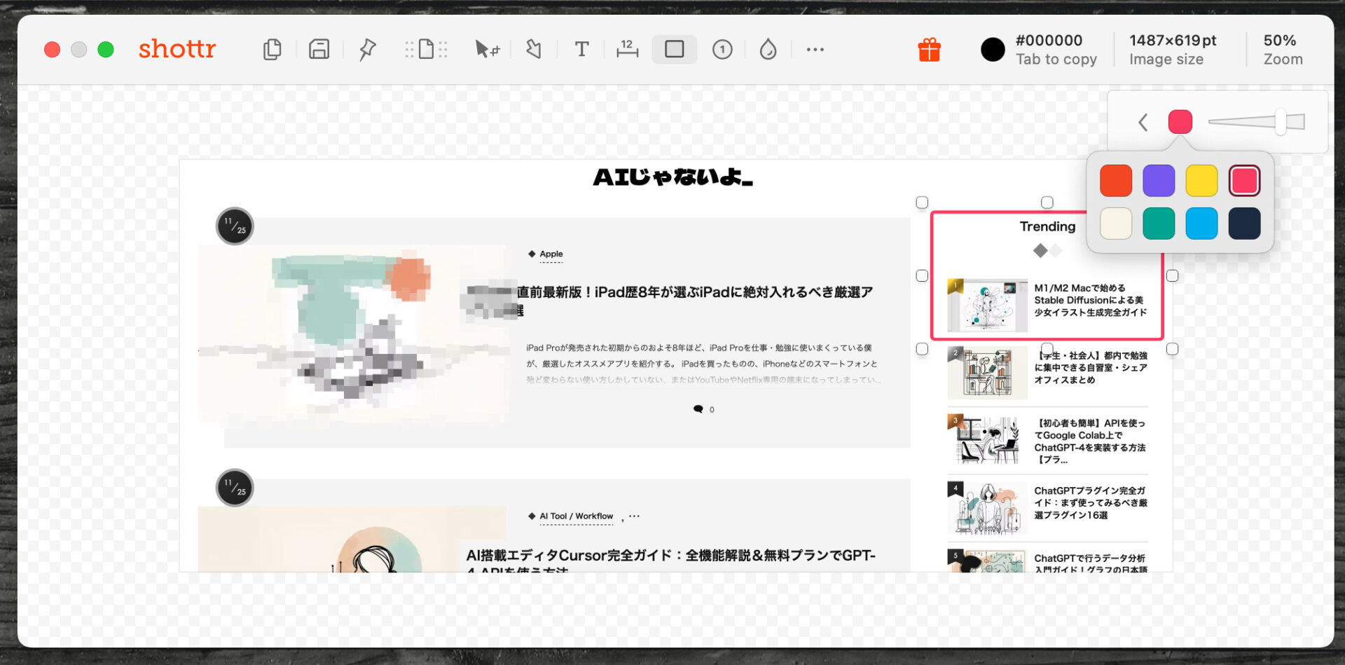 興味のある記事をサクサクとチェックしていくことができる(画像は著作権対策のためボカシ)。