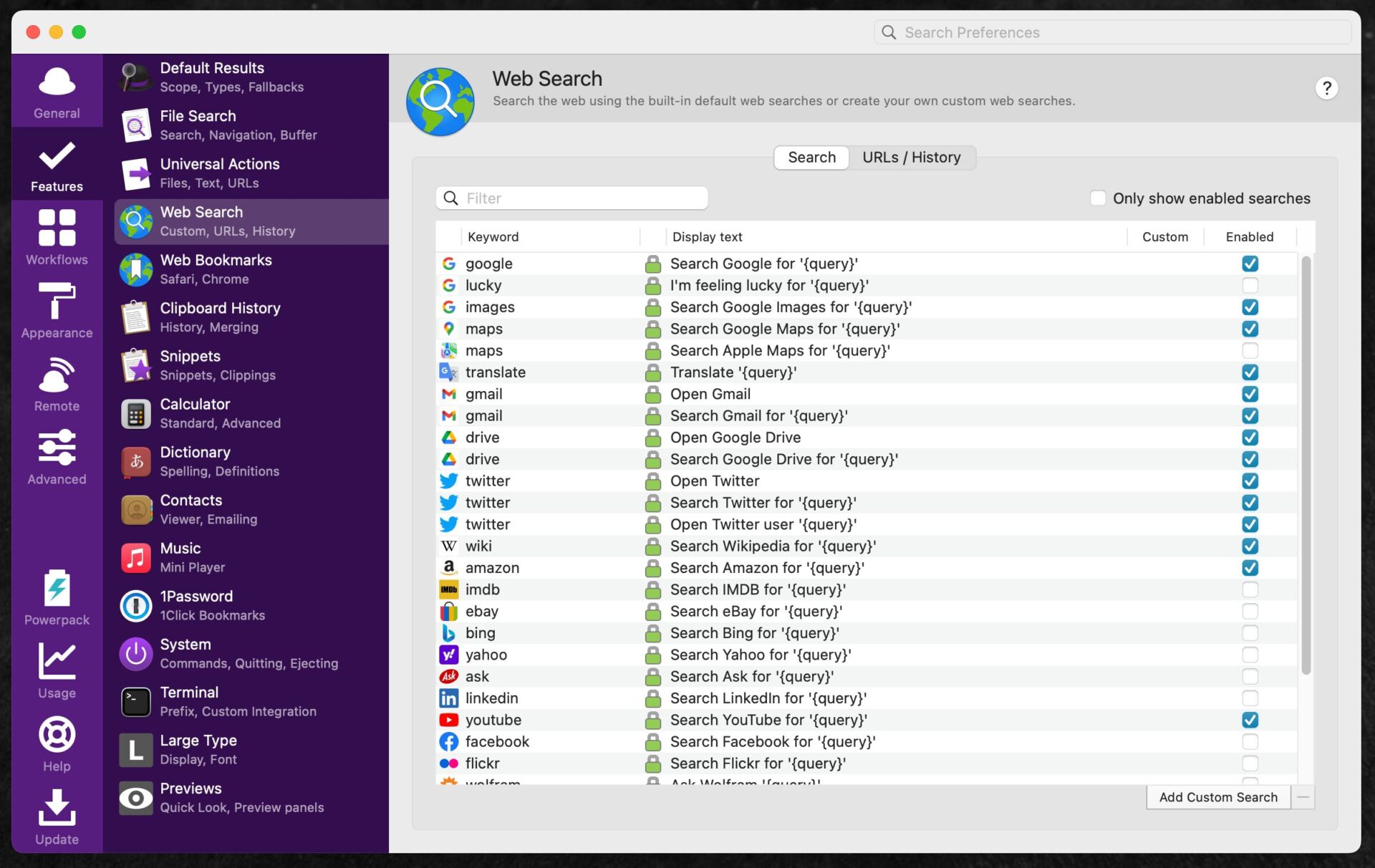 Alfredは、ウェブ検索、計算、スペルチェック、システムコマンドなど、Spotlightにはない多くの追加機能を備えている。