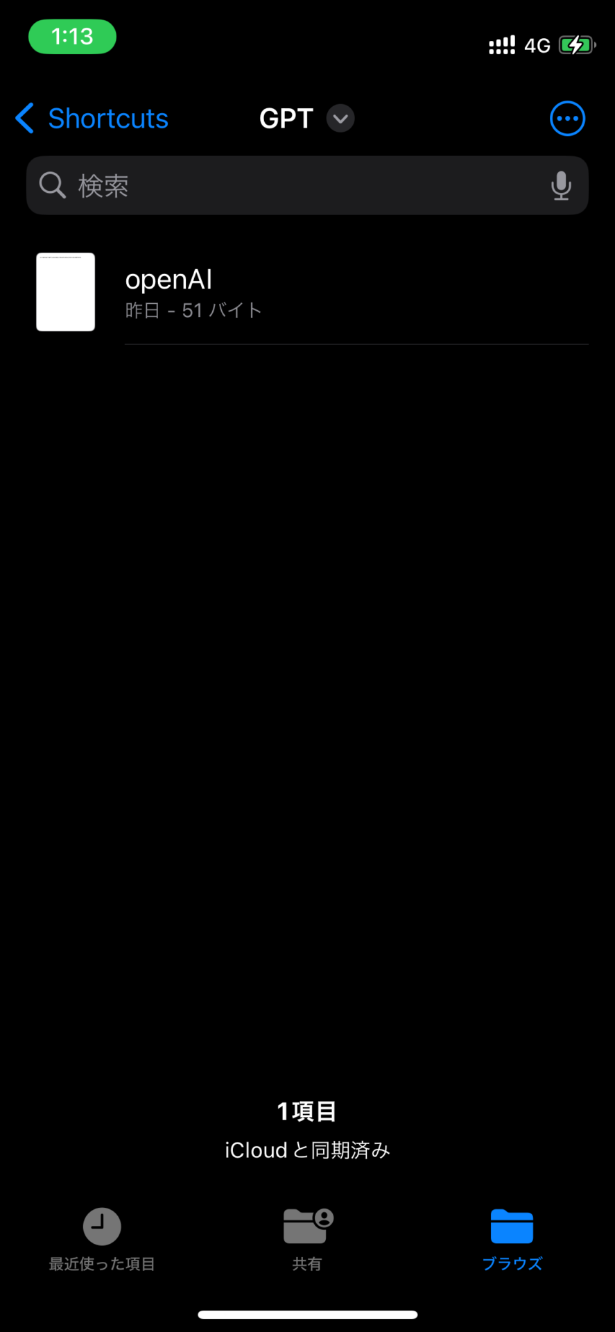 このショートカットを使う前に、iPhoneで「ファイル」アプリを開いて、iCloudドライブにある「Shortcuts」フォルダを開くことで、APIキーの入っているテキストファイルを端末にダウンロードしておこう。