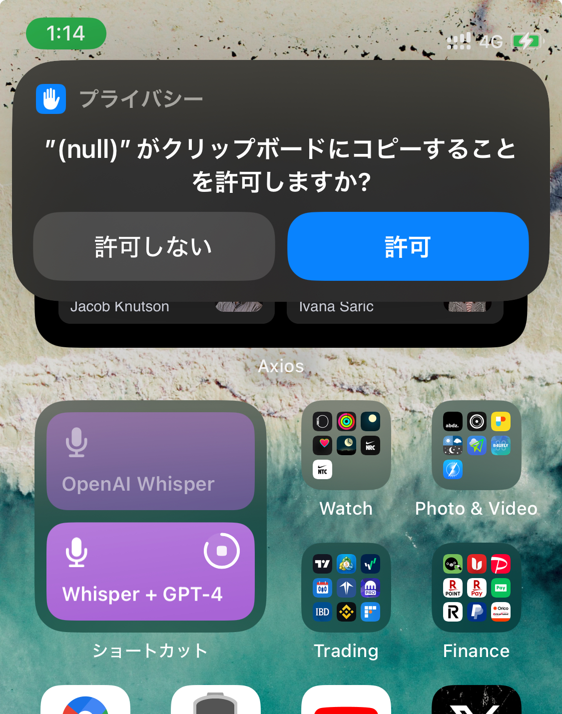 Appleの音声入力は、「ChatGPT」を何度言っても正しく聞き取れず、「チャットGP」となってしまうので、こういったストレスがなくなることは大きい。