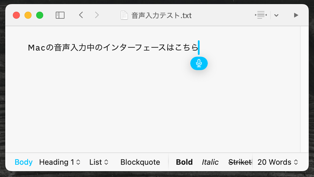 少し待っていると、先ほど文章を書いている途中だったカーソルの部分に、書き起こされたテキストが自動で挿入される。