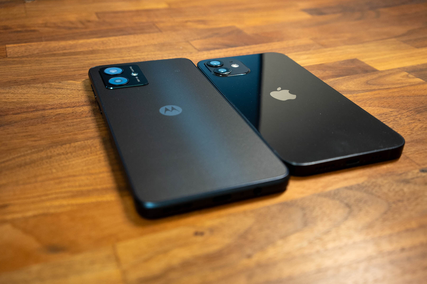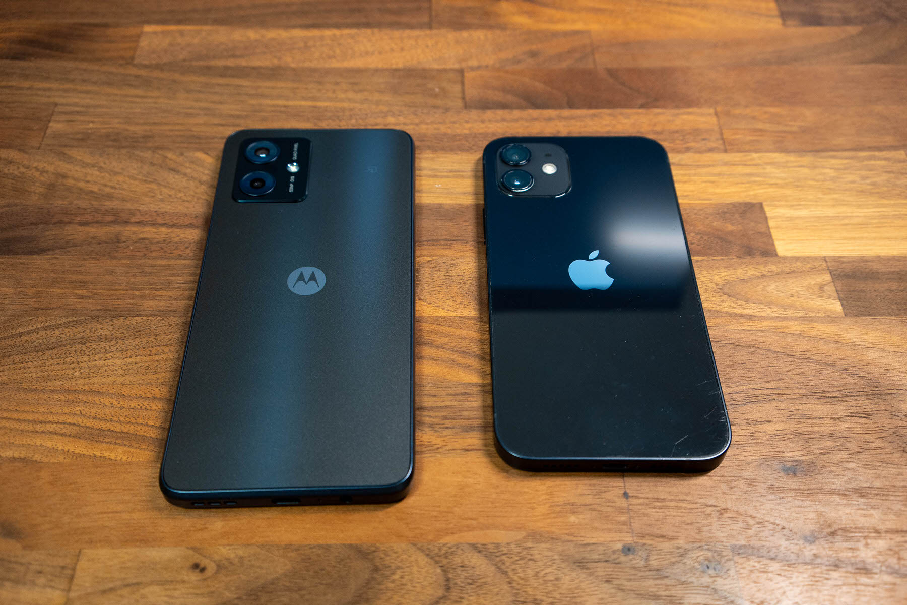 moto g64 5G(左)と、iPhone 12(右)のどちらも、細部までかなり近いクオリティで、ぱっと見では見分けがつかないレベルだ。