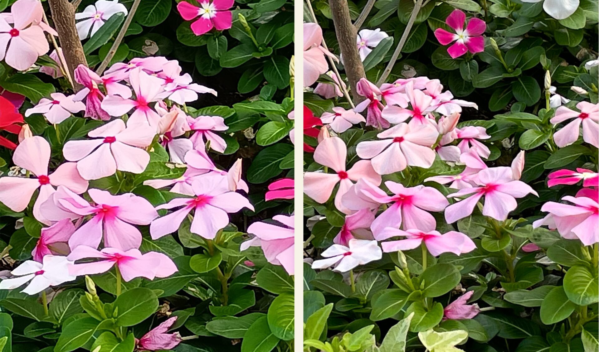 花びらを拡大して左右に並べて比較してみると以下のようになる。